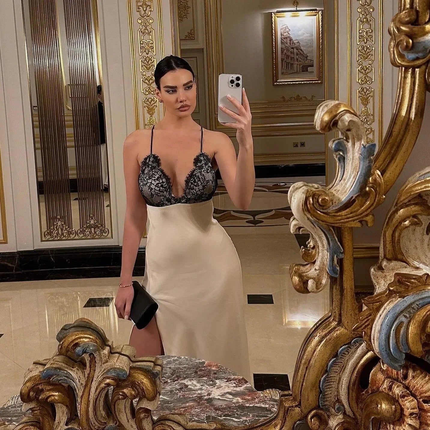 Indulge in the allure of this elegant Satin Maxi Dress, exuding sophistication at every seam. This luxurious piece, fashioned from premium satin, cascades gracefully, showcasing exquisite lace accents for a touch of refinement. Ideal for special occasions, the flowing skirt creates a sublime silhouette that moves with ethereal grace. Transition seamlessly from day to night with this timeless ensemble, a versatile staple for any wardrobe. Elevate your ensemble with chic heels for a sophisticated finish. Effortlessly stylish, leave an unforgettable impression wherever you wander. For style inspiration, explore our Instagram @mermaid_way for the latest trends. COMPOSITION: 55% Recycled Polyester, 45% Polyester LINING: 97% Polyester, 3% Elastane LACE: 100% Polyester Enjoy hassle-free size exchanges if the fit isnt perfect.