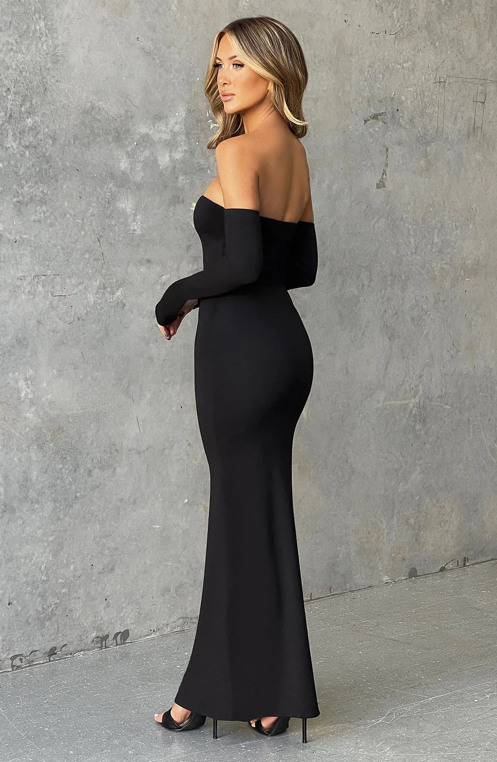 Tags: bardot neckline, Black Maxi Dress, Elegant Dress, off-shoulder dress, Premium Modal Fabric
