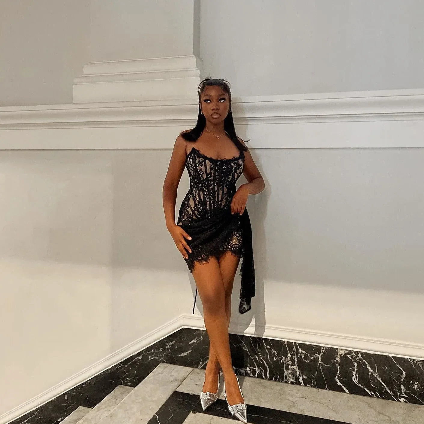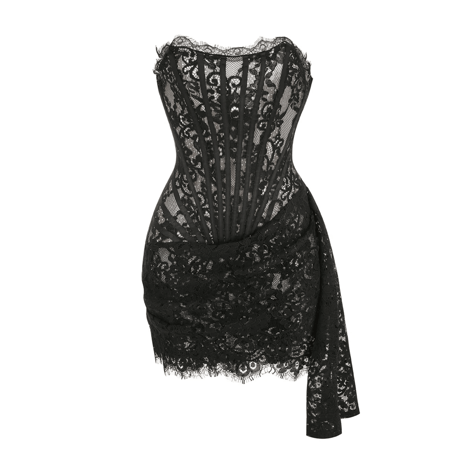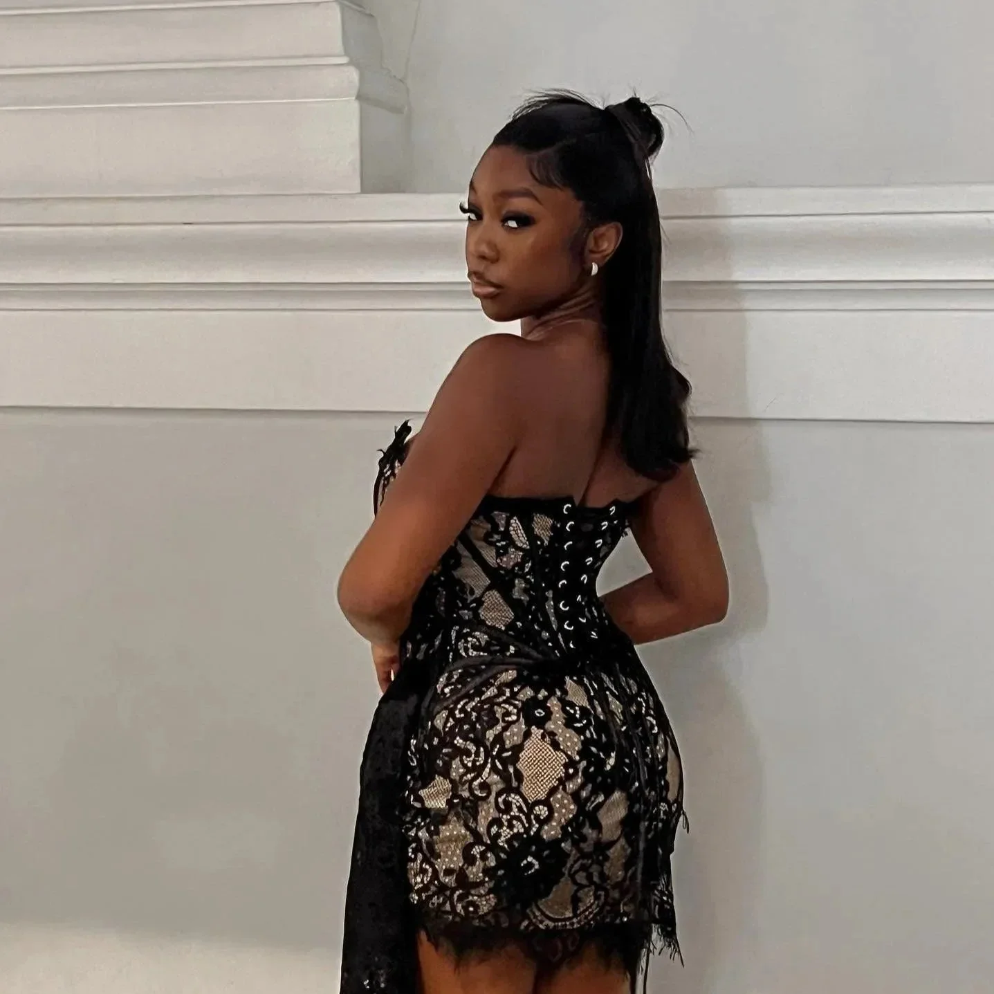 Elevate your wardrobe with the Elegant Lace Corset Draped Black Mini Dress. This chic dress showcases exquisite lace and a gathered bodice that accentuates your silhouette beautifully. Featuring an off-shoulder style for added charm and versatility, its ideal for various occasions from casual gatherings to formal events. Crafted from premium materials, this dress ensures both comfort and sophistication, becoming a must-have staple in your closet. Its flattering cut and classic design make it a timeless fashion piece that appeals to those with an eye for refined style. Discover endless style possibilities with our Instagram @mermaid_way for fashionable looks and styling tips. Experience the perfect fit with our hassle-free size exchange policy.