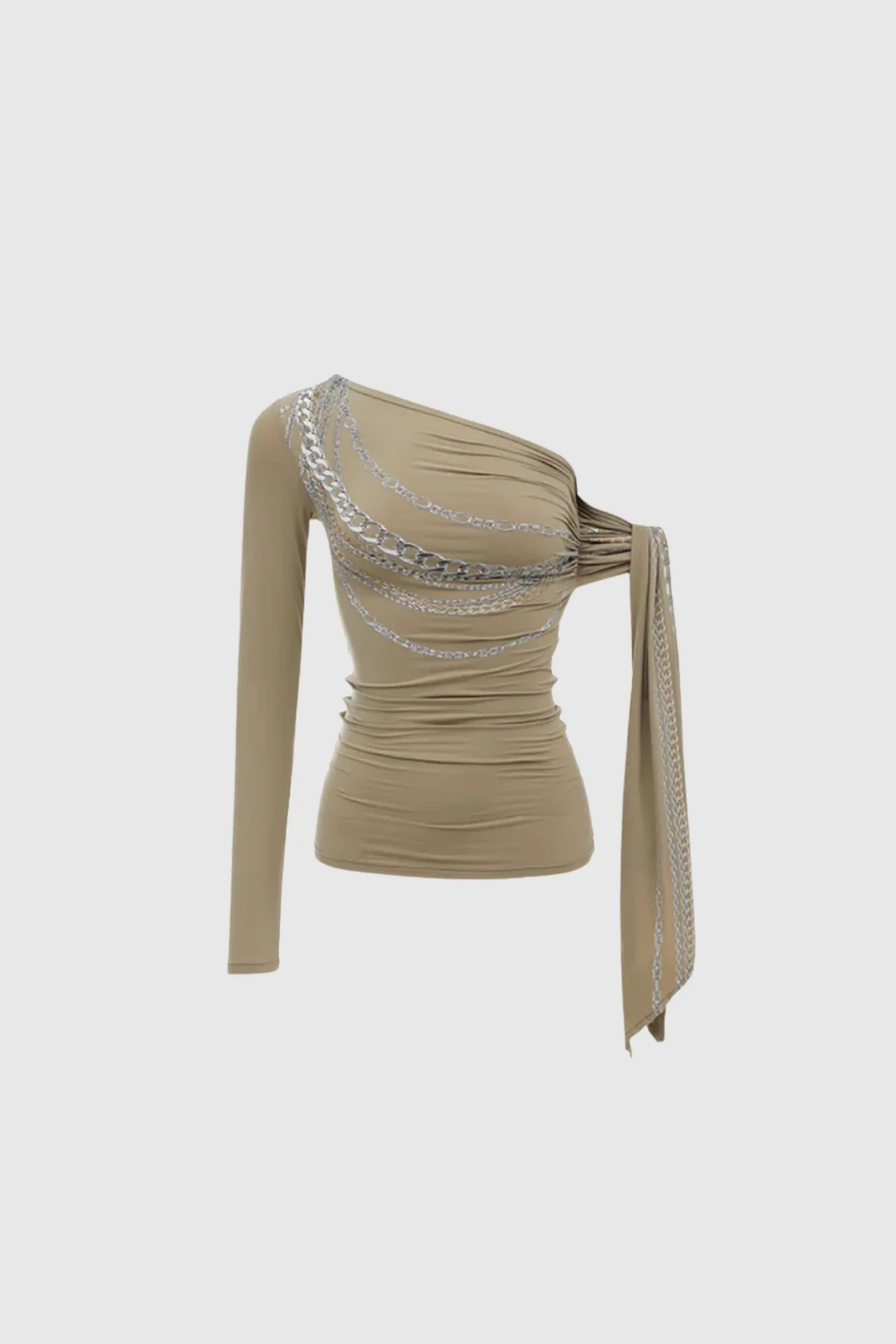 Elevate your outfit with the sophisticated and stylish Elegant Lace-Up Ruched Single Shoulder Top. This top features a unique lace-up detail, ruched design, and a single shoulder style, adding a touch of elegance to any look. The modern and chic twist makes it perfect for any occasion, a must-have in any fashion-forward wardrobe. Constructed with 50% Polyester and 50% Cotton for slight stretch and easy care. Color variations may occur due to lighting on images; the product images without models most accurately represent the color.