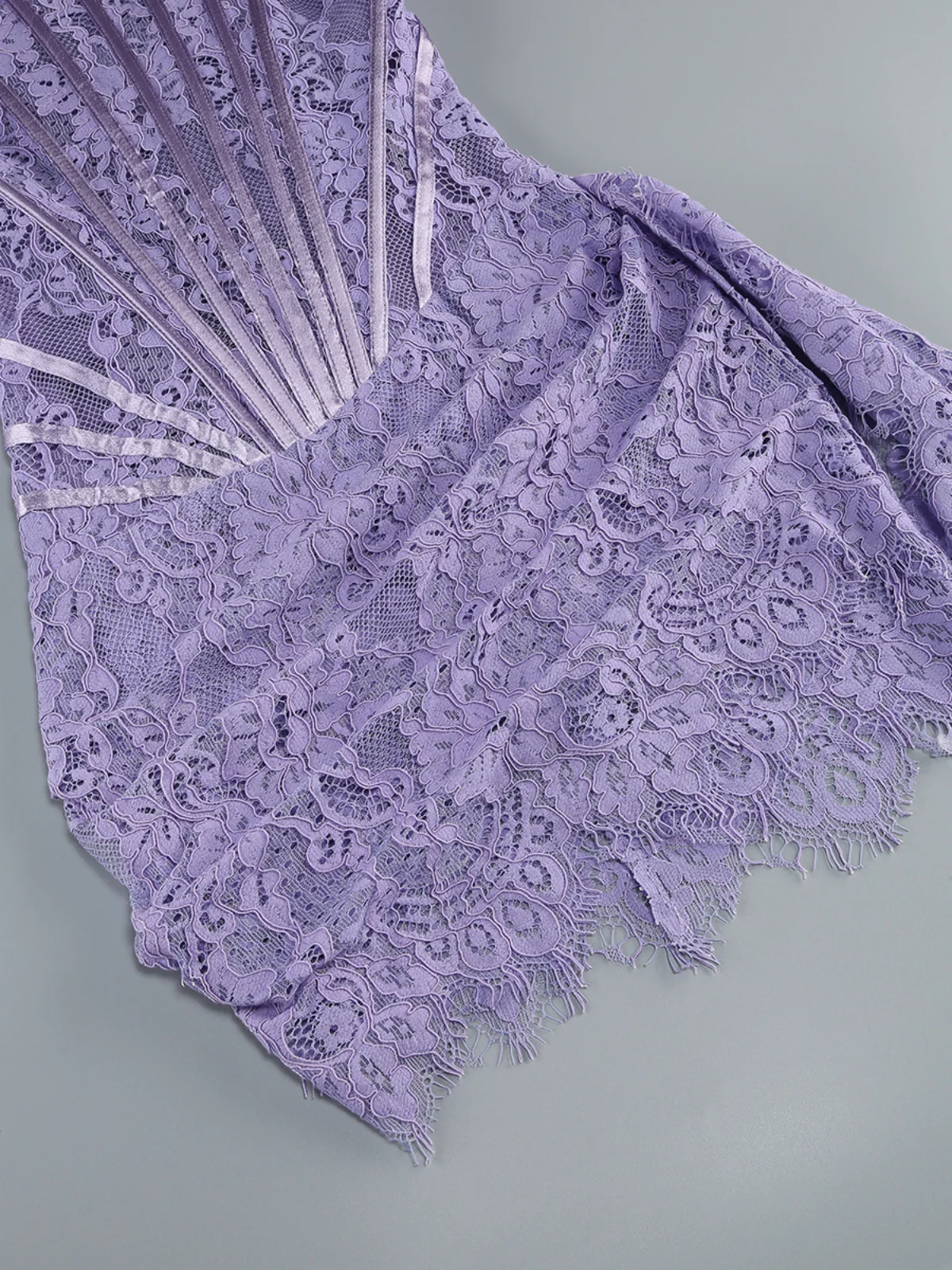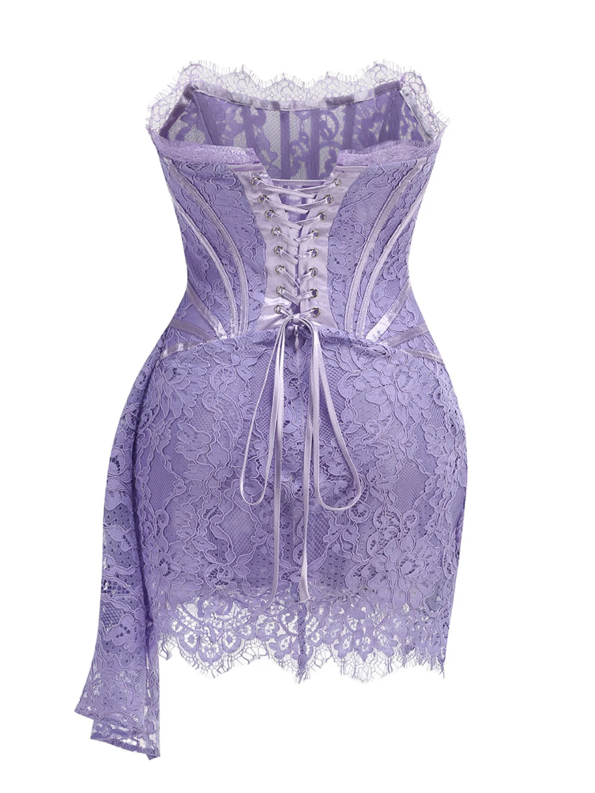 Indulge in the luxury of the Elegant Lilac Lace Strapless Dress. Crafted with exquisite lace patchwork and a flattering strapless silhouette, this premium dress exudes sophistication and elegance. A must-have for special occasions, this dress is made from high-quality 100% Polyester with slight stretch for comfort. Dry clean only. Please note, color may vary slightly due to image lighting. For the most accurate color representation, refer to product images without the model. Model in image is wearing size S.