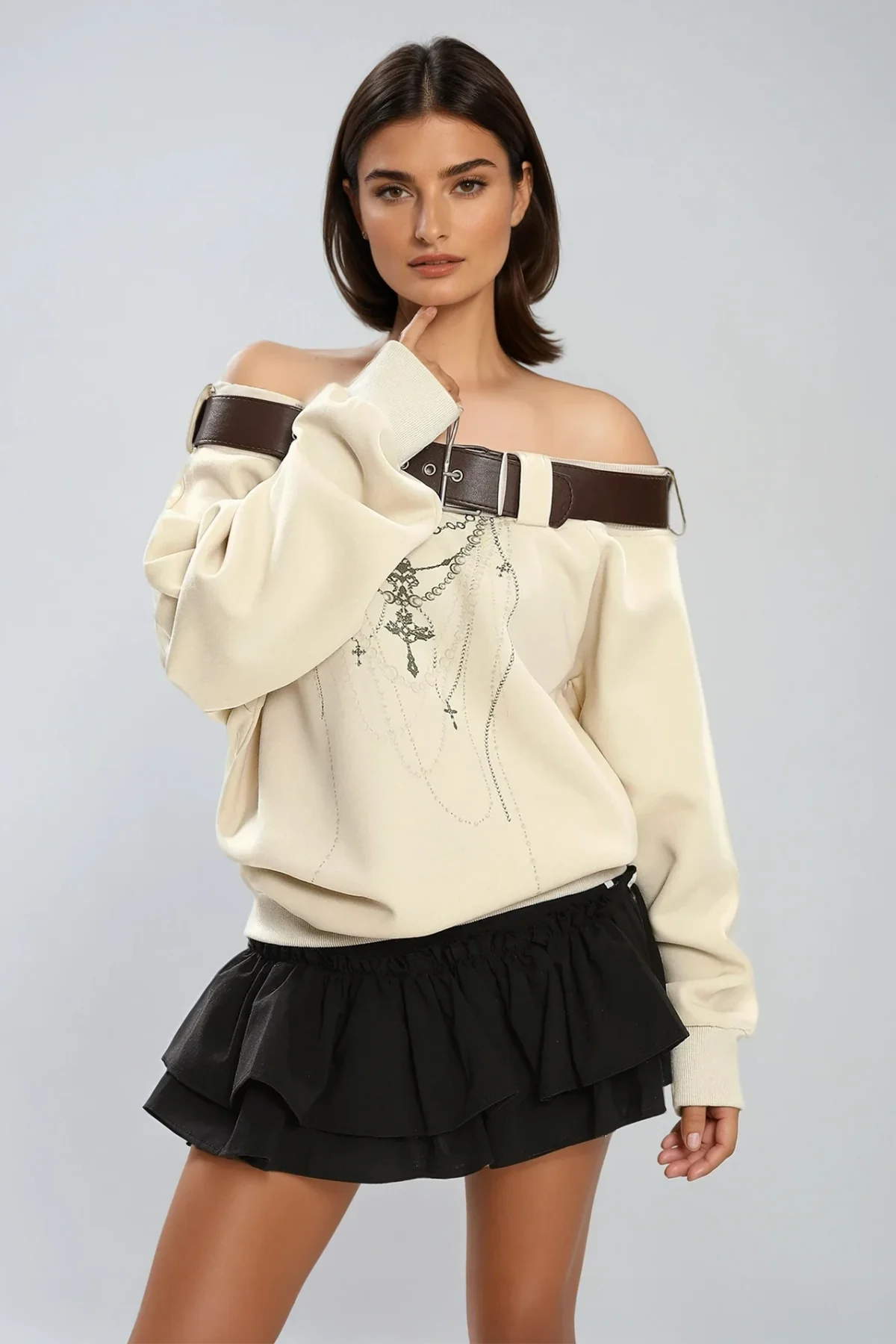 Elevate your style with the Elegant Off-Shoulder Print Top for Women. This top features a stylish off-shoulder neckline that accentuates the collarbones, crafted from lightweight fabric with a vibrant print. The relaxed fit offers comfort and freedom of movement, perfect for casual outings or chic gatherings. Add a versatile piece to your wardrobe that exudes contemporary style and timeless appeal. Color variations may occur due to lighting. Stretch Factor: Non-Stretch. Care Instructions: Gentle machine wash.