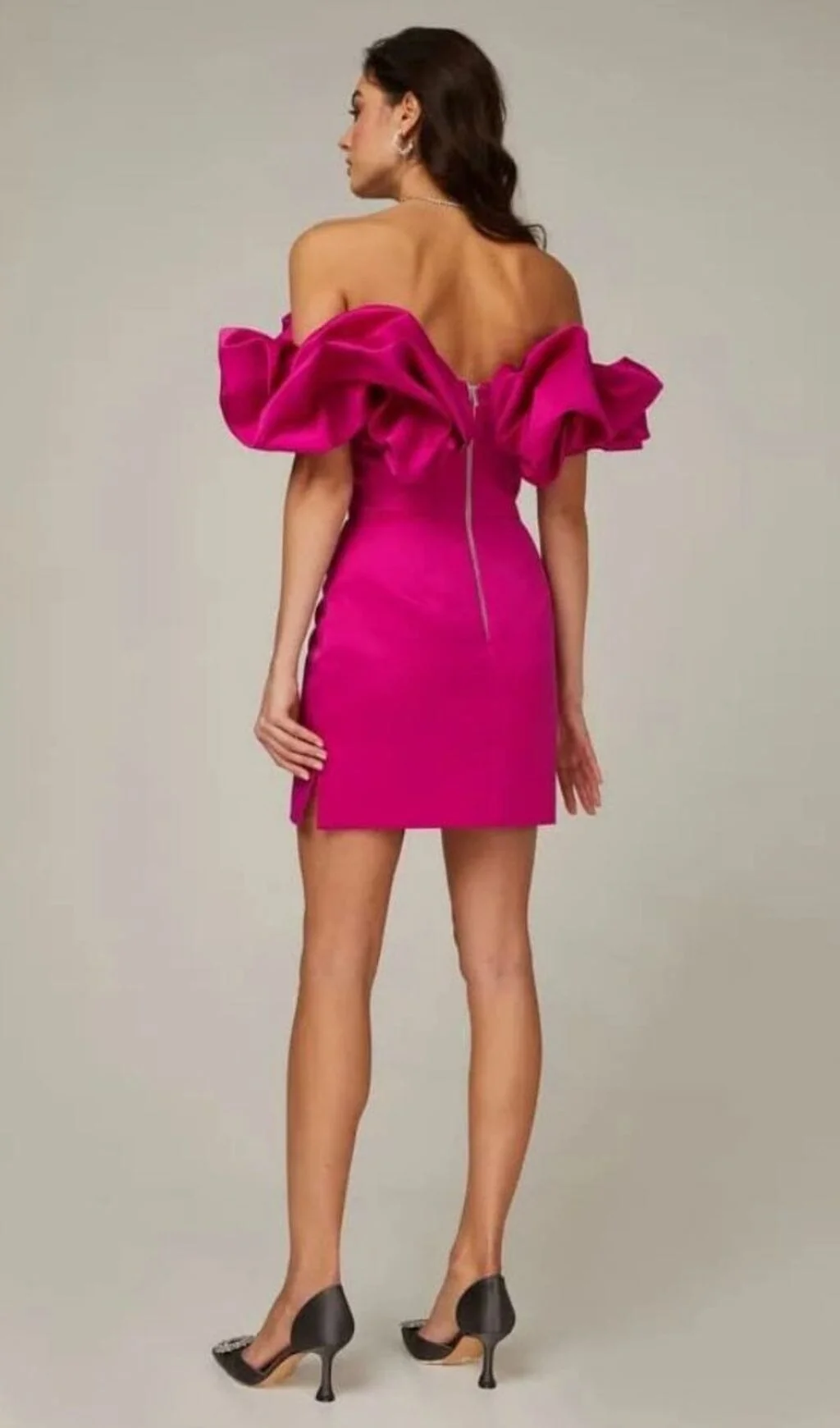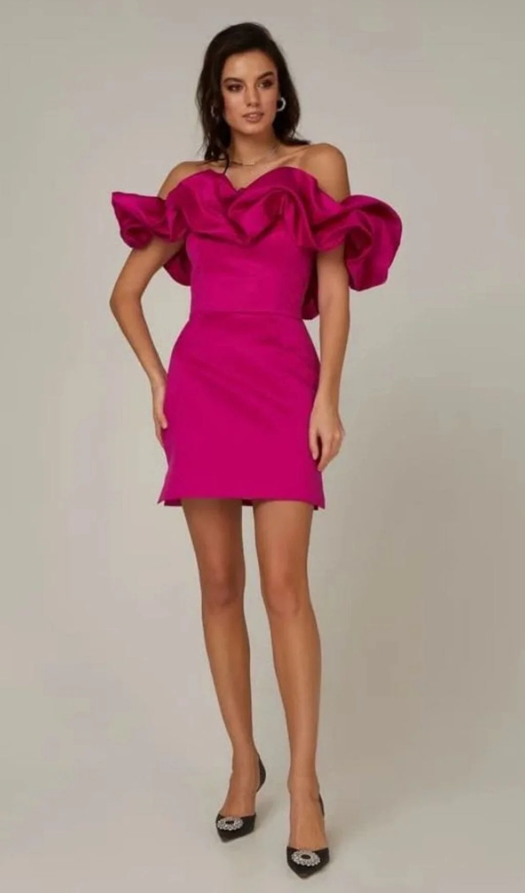 Experience elegance and charm with our pink satin A-line mini dress. The smooth satin fabric exudes nobility and poise, while the unique ruffle edge design adds a touch of chic femininity. This dress accentuates your curves beautifully, creating a voluptuous and attractive silhouette. Dry clean only. Find your perfect fit with our size chart guidance. Embrace your femininity with this stunning dress!