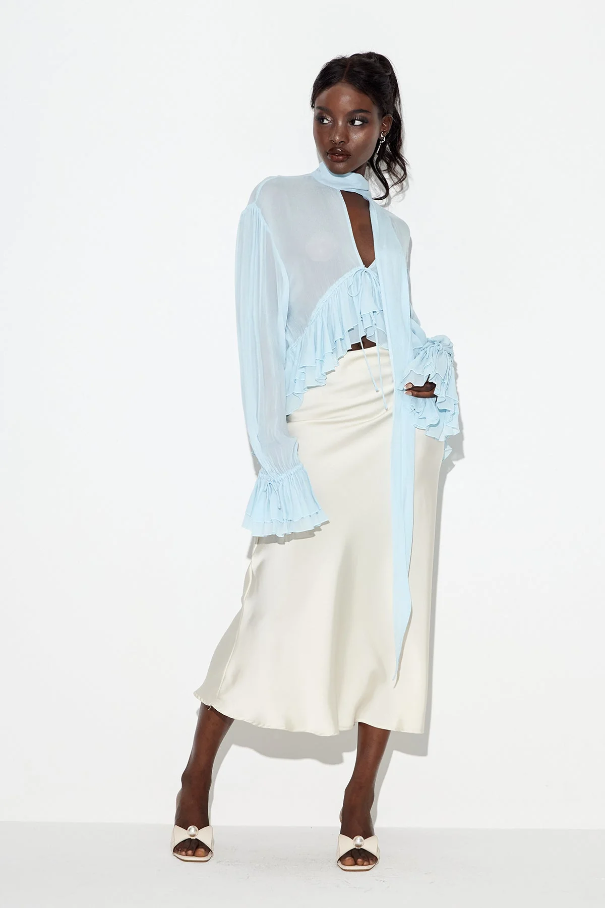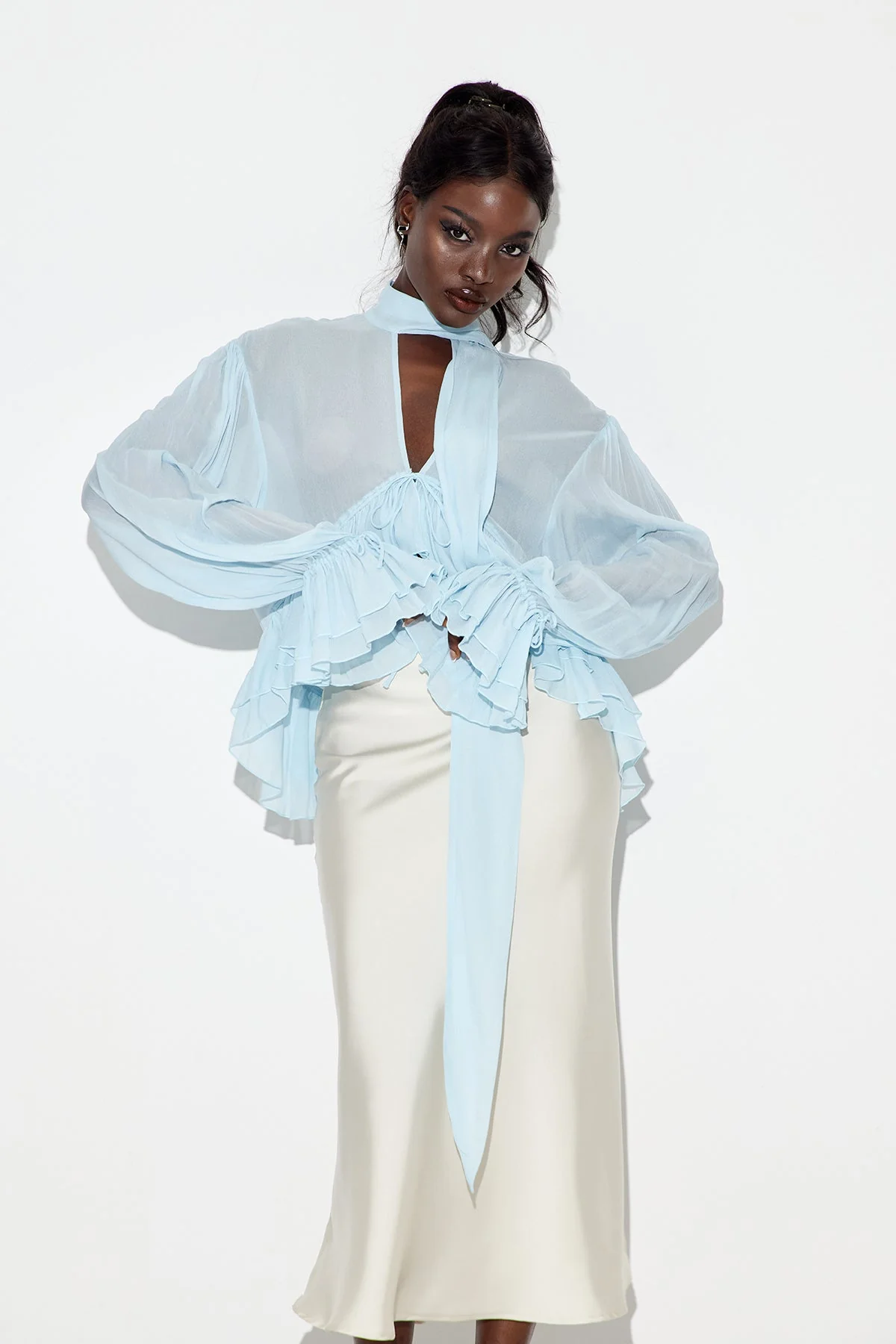 Discover timeless elegance with the Eadweard Plunge Scarf Top, featuring a flattering V-neckline and a versatile scarf detail for multiple styling options. This breathable top offers comfort and style, perfect for layering or standalone wear. Elevate your wardrobe with this chic essential that suits various body shapes, exuding sophistication and adaptability. Gentle machine wash recommended.
