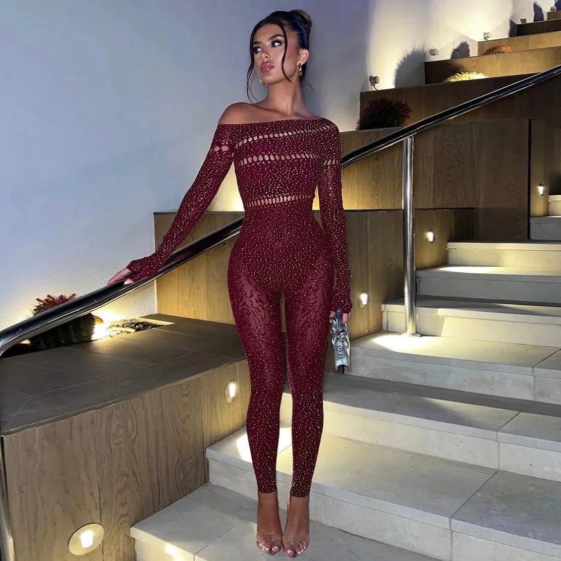 The Elegant Rhinestone Detail Jumpsuit offers a perfect blend of elegance and boldness, ideal for special occasions or nights out. Available in a variety of stunning colors including Burgundy, Black, Brown, Dark Green, Red, White, Dark Blue, and Nude. Crafted with premium materials for a flattering fit, this comfortable jumpsuit features a glamorous rhinestone embellishment. Its curve-hugging design enhances your silhouette, ensuring you look chic and confident all day or night. Pair it with your favorite accessories for a head-turning look that will elevate your fashion game. Explore more style ideas on Instagram @mermaid_way and enjoy a complimentary exchange for a better fit if needed.