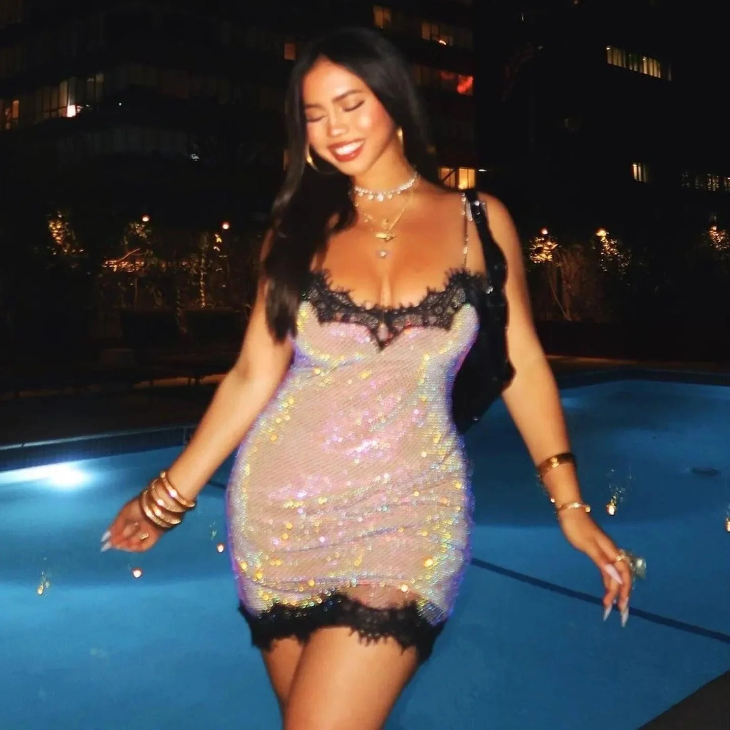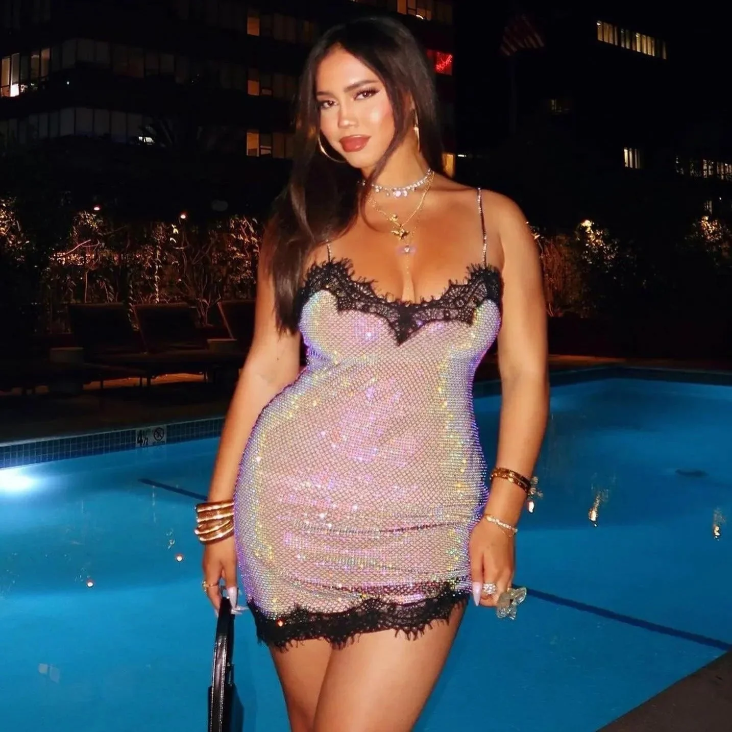 Elevate your wardrobe with this exquisite beige mini dress featuring intricate lace details and sparkling rhinestones. Perfect for special occasions, this dress offers sophistication and a touch of glamour. The tailored design ensures a flattering silhouette, combining style and comfort seamlessly. The delicate lace and shimmering rhinestones make this dress a standout choice for any event. Pair with pointed toe heels for a polished ensemble. Check out styling ideas on Instagram @mermaid_way. Enjoy a complimentary size exchange if needed.