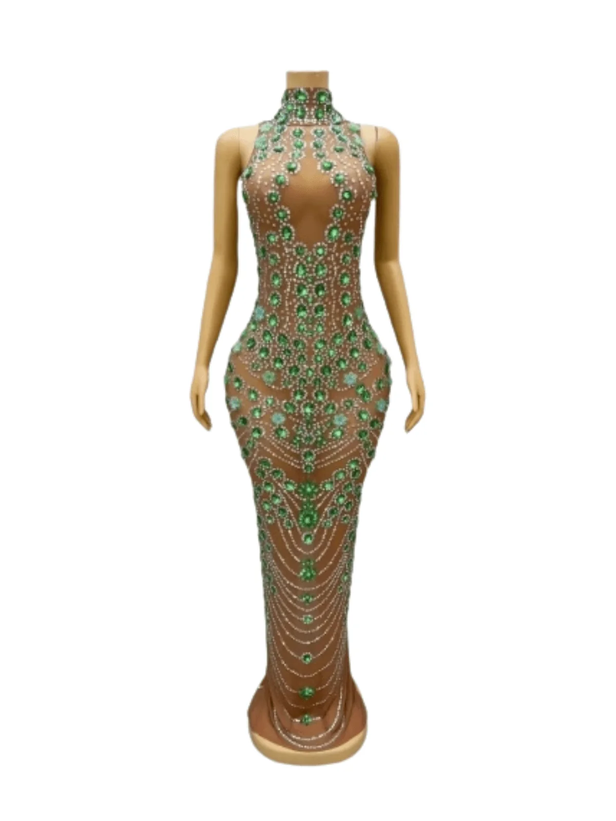 Indulge in luxury with our elegant Rhinestone Maxi Dress. This stunning gown features intricate rhinestone embellishments that will make you feel like a true fashion icon. Perfect for any elegant occasion, it offers a comfortable fit with a slight stretch factor and invisible zipper opening at the back. Elevate your style and make a statement with this exquisite piece crafted from 100% Polyester. Expertly designed for maximum impact, this dress is a must-have for your formal wardrobe. Please note: Color may vary due to lighting. Opt for dry clean only. Model is showcasing size S.