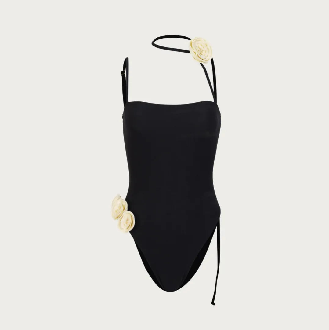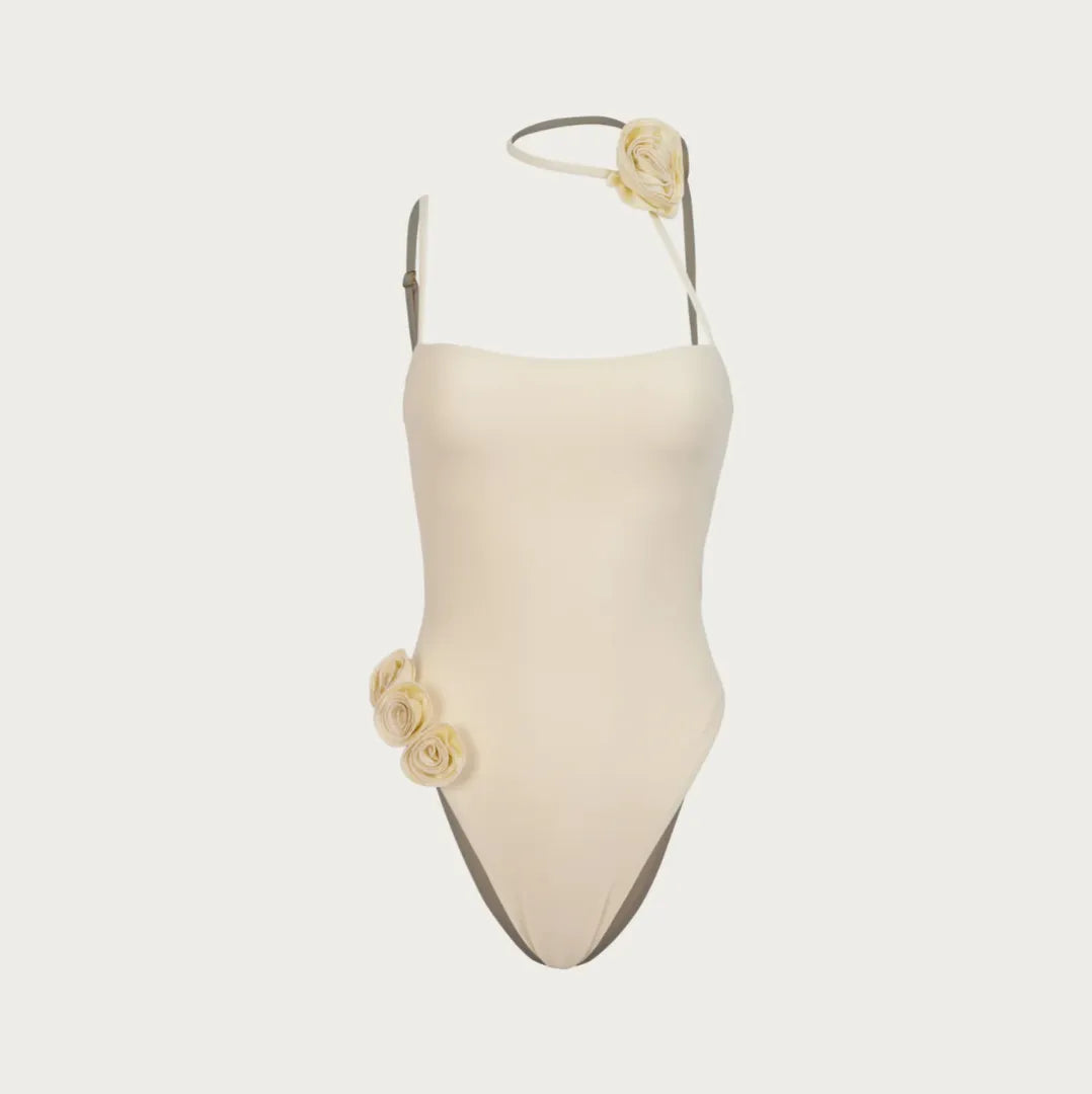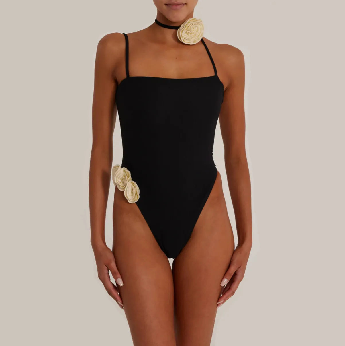 Indulge in elegance with our Rose Embellished One-Piece Swimsuit in Ivory or Black & Cream. Perfect for poolside lounging or beach getaways, this swimsuit features intricate rose details adding a romantic touch. Crafted from premium stretch fabric, it offers both comfort and a flattering silhouette. The minimal shoulder straps accentuate your shoulders, while the rose hip embellishments bring a unique, feminine flair. Ideal for sun-soaked days and poolside soirées, this swimsuit effortlessly combines style and functionality. Pair with striking accessories for a luxurious ensemble. Dont worry about sizing; we offer complimentary size exchanges if needed.