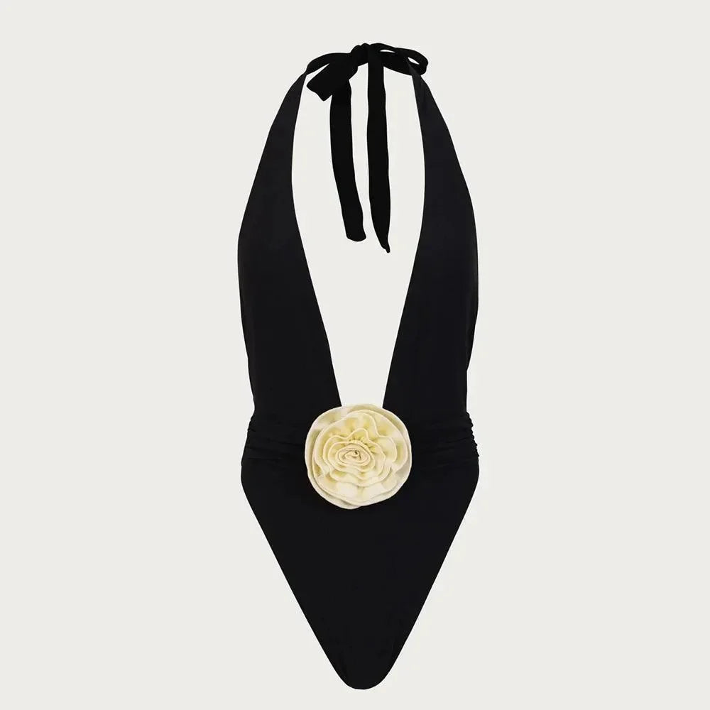Indulge in sophistication with the Elegant Rosette V Halter One Piece Swimsuit from the Heatwave Collection. Available in timeless white or bold black, this swimsuit features a flattering high-cut leg design, deep V-neckline, and delicate flower embellishment at the waist for a luxuriously feminine touch. Crafted from premium quick-drying fabric, it offers both comfort and durability, making it perfect for all-day wear whether you lounge by the pool or swim in the ocean. Embrace your style with our chic swimsuit and feel confident wherever you go. For sizing help or exchanges, contact us!