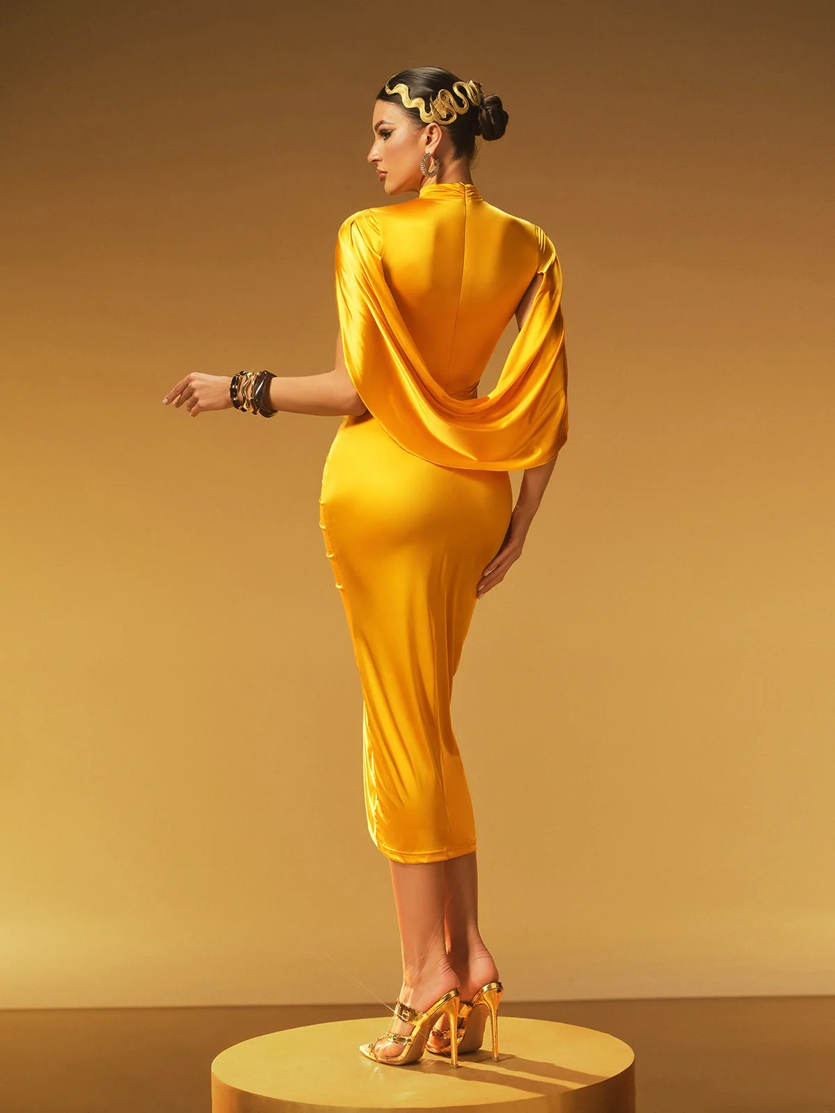 Experience elegance and a flattering design with our V-neck ruched midi dress. The V-neckline enhances your silhouette, while the ruched detailing adds texture and shape, creating a slimming effect. Suitable for both daytime events and evening occasions, this versatile midi dress highlights your confidence and grace. Elevate your wardrobe with this sophisticated piece that effortlessly blends comfort and style. Made of 100% Polyester, featuring an invisible zipper at the back. This non-stretch dress is recommended for dry clean only to maintain its quality. Please note that the color may vary due to lighting. Model in image is wearing size S.