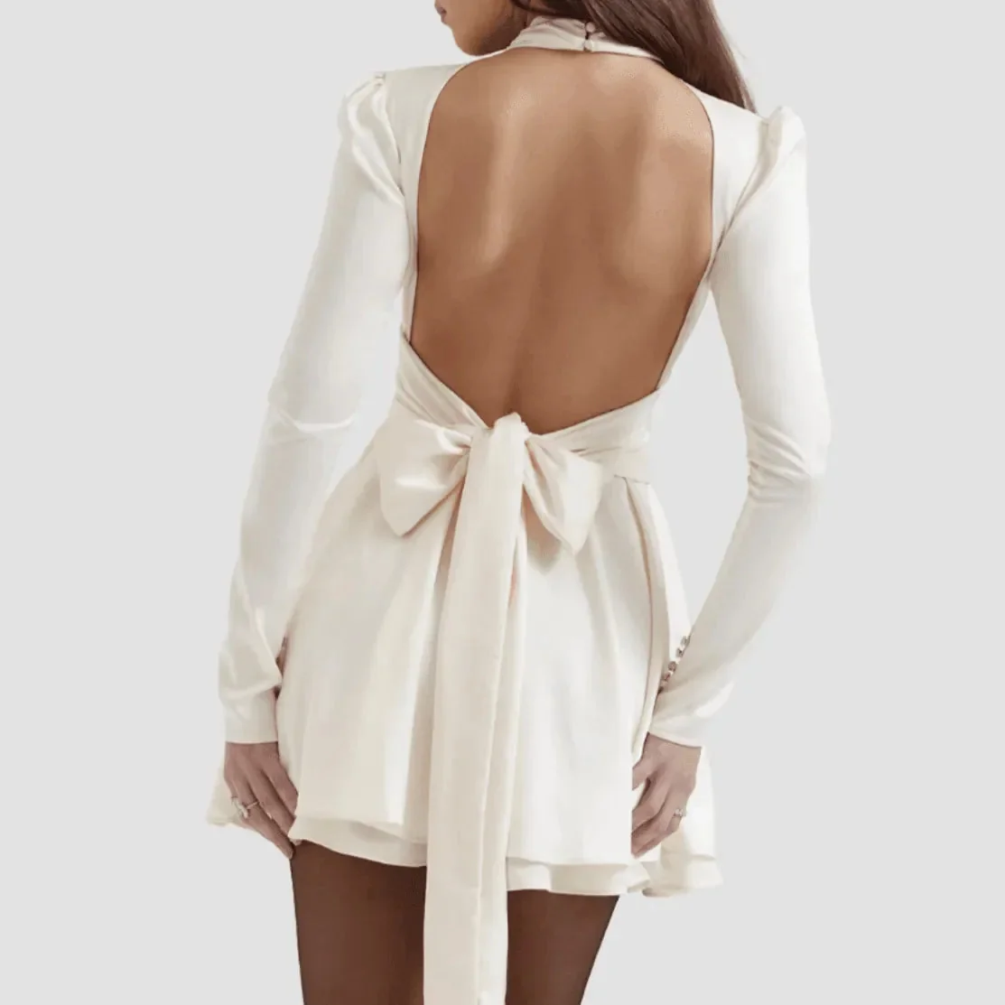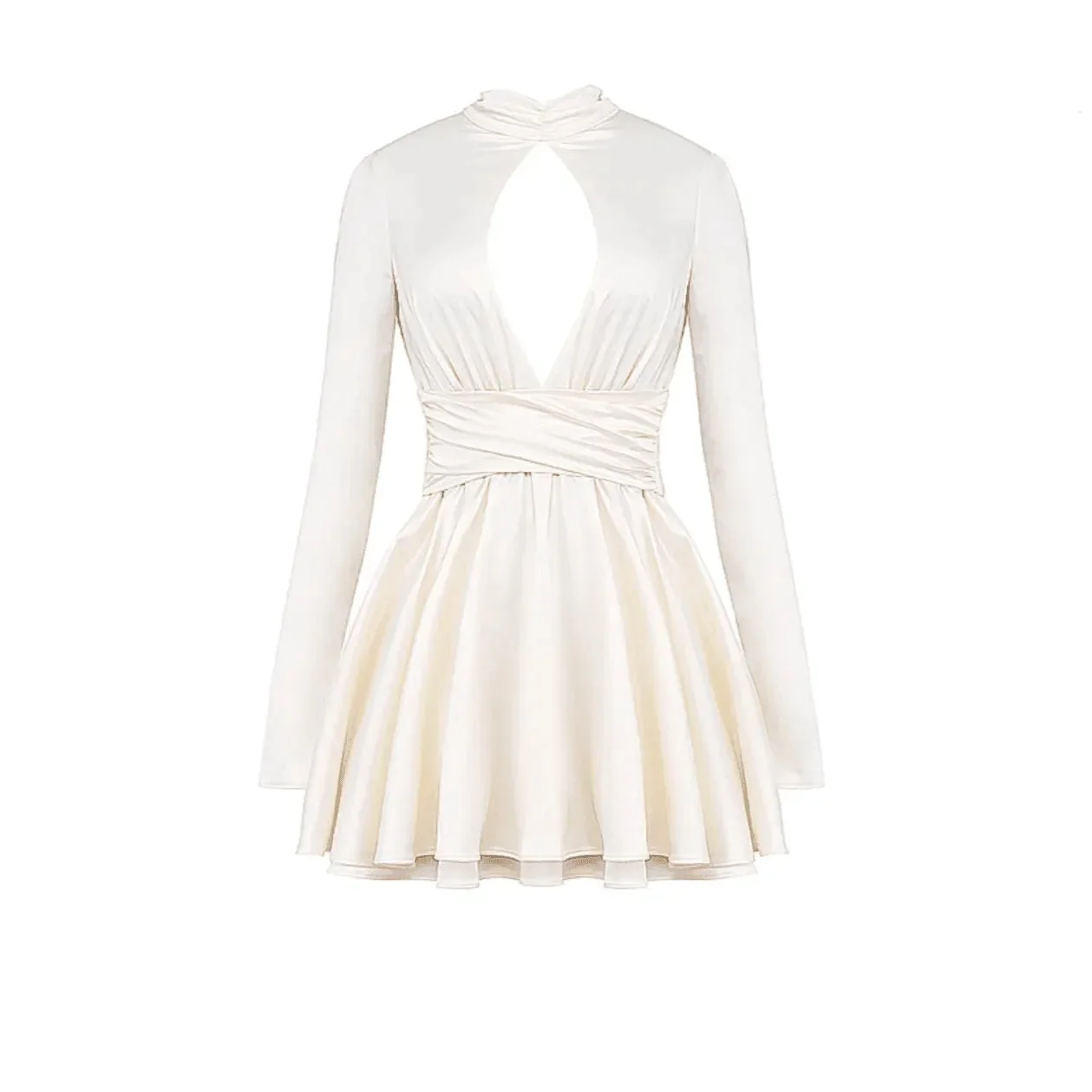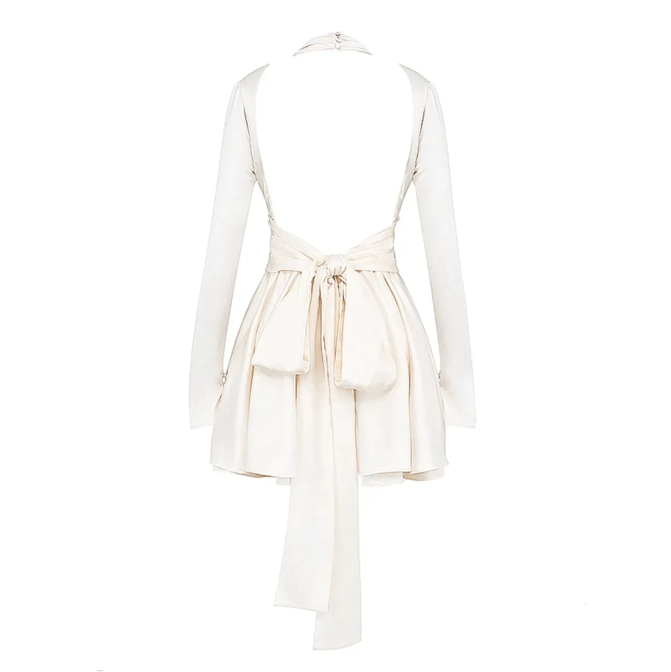 Elevate your style with our Elegant Satin Bow Mini Dress in charming ivory. This luxurious satin dress features long sleeves and a chic bow detail for sophistication. Perfect for evening events or special occasions, it offers a flattering silhouette-enhancing fit. Whether its a formal event or a romantic dinner, this dress guarantees a memorable impression. Its versatile design allows effortless styling, a wardrobe must-have. Enjoy timeless elegance with our stunning Satin Bow Mini Dress today! For size exchanges, contact us for hassle-free assistance.