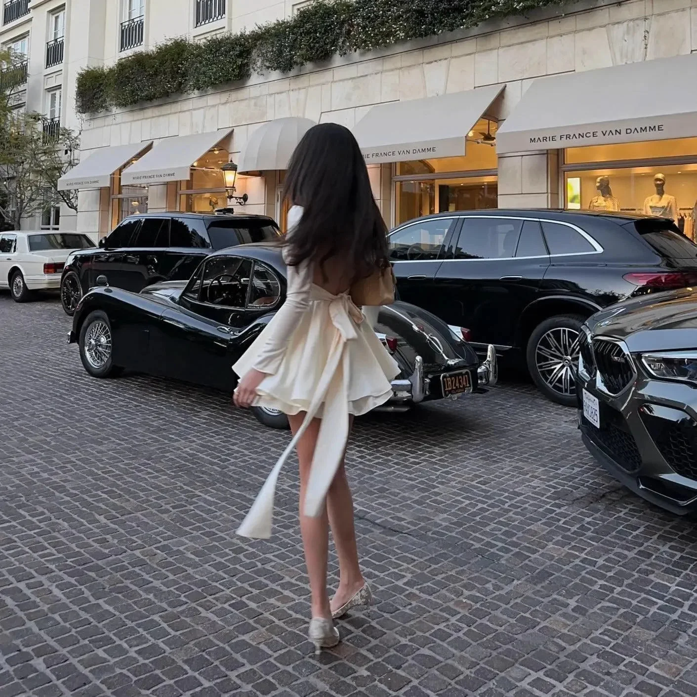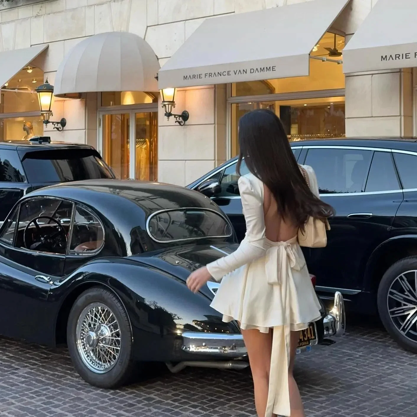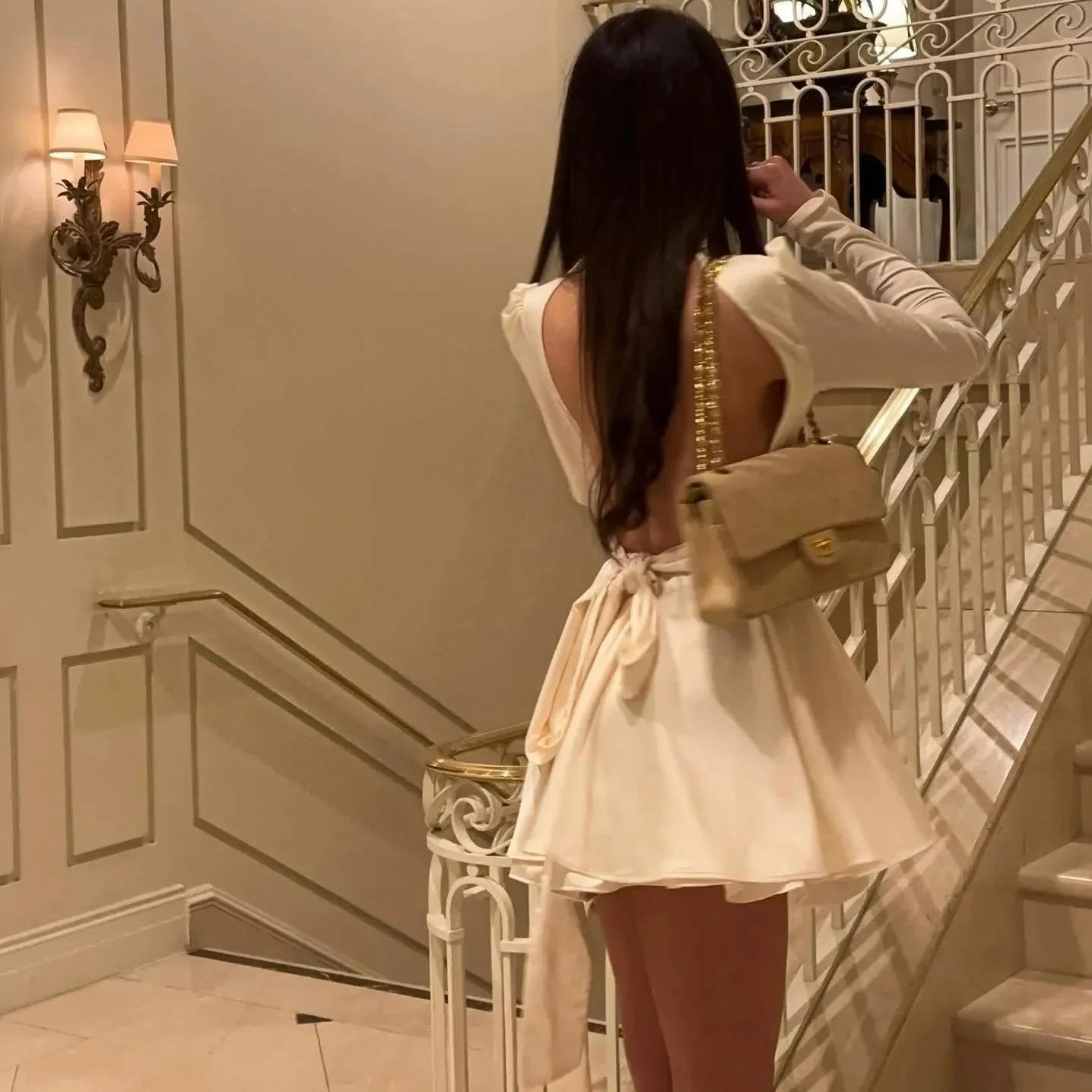 Elevate your style with our Elegant Satin Bow Mini Dress in charming ivory. This luxurious satin dress features long sleeves and a chic bow detail for sophistication. Perfect for evening events or special occasions, it offers a flattering silhouette-enhancing fit. Whether its a formal event or a romantic dinner, this dress guarantees a memorable impression. Its versatile design allows effortless styling, a wardrobe must-have. Enjoy timeless elegance with our stunning Satin Bow Mini Dress today! For size exchanges, contact us for hassle-free assistance.