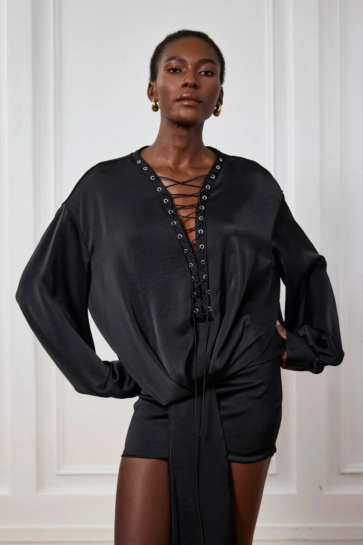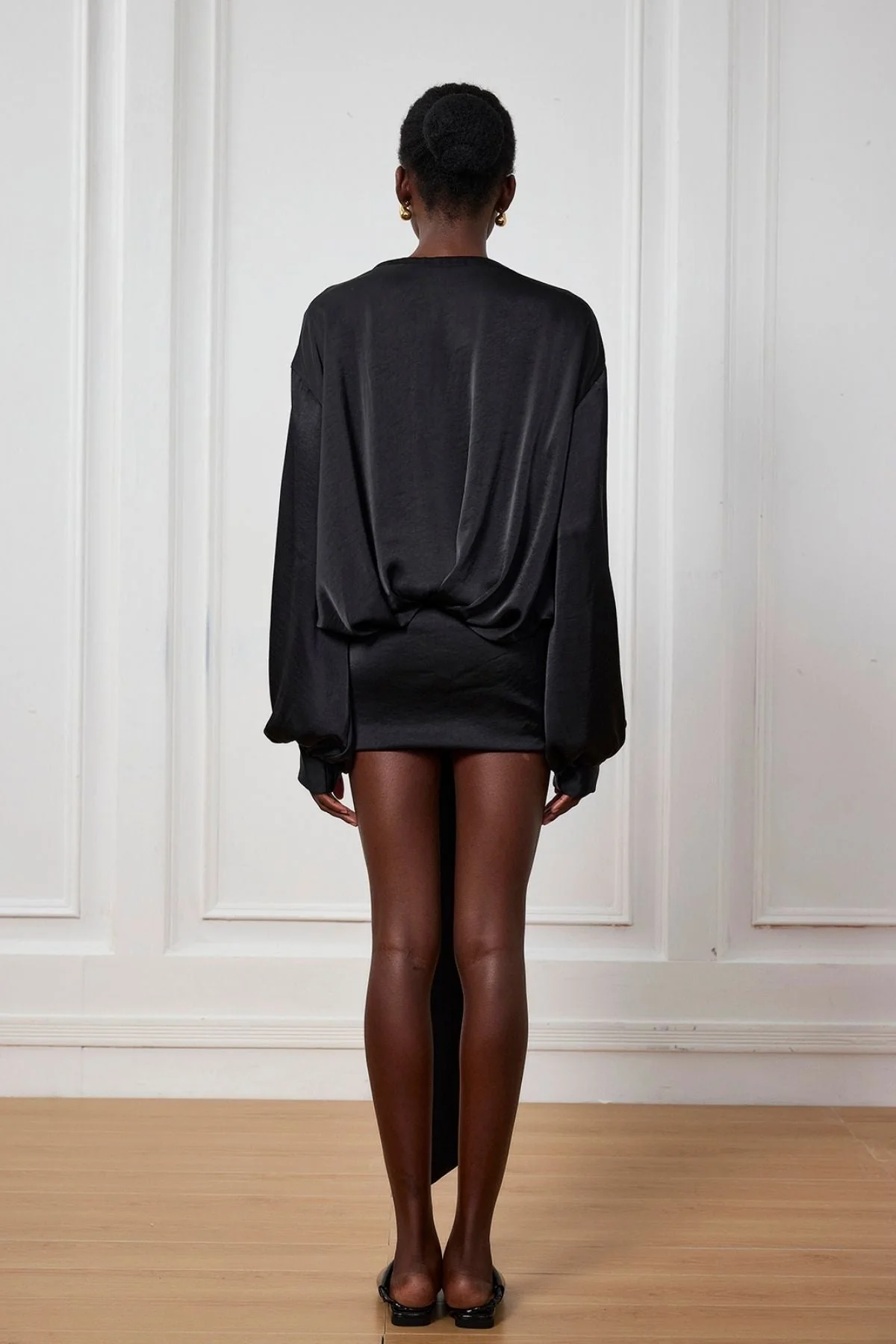 Indulge in sophistication and glamour with the Elegant Satin Fringe Mini Dress in Black. Crafted from luxurious satin with a playful fringe detail, this dress is perfect for special occasions. Elevate your style effortlessly with this chic and unique piece. Made of 100% Polyester. Gentle machine wash recommended to maintain its look. Please note, color may vary due to lighting in images.