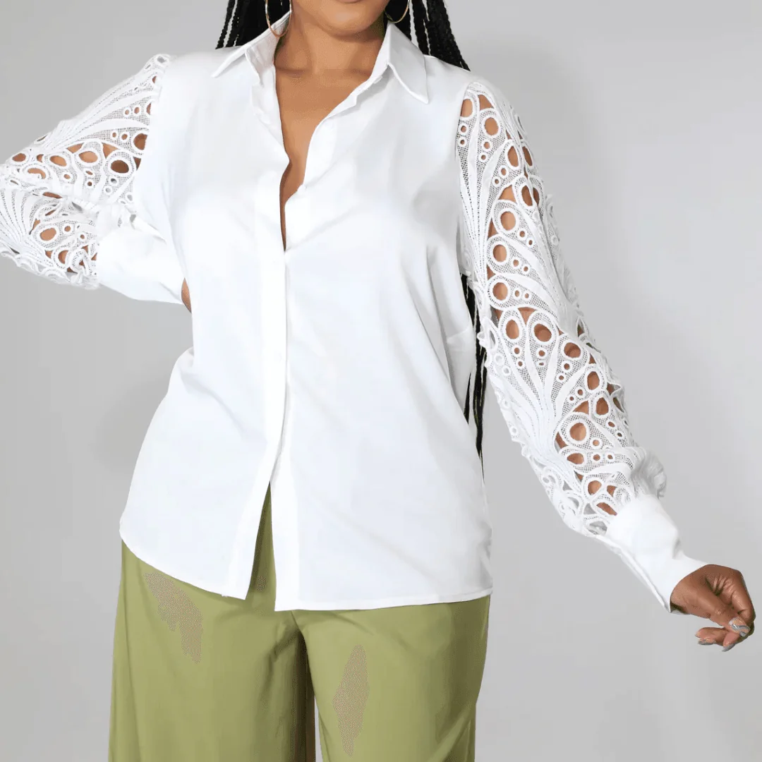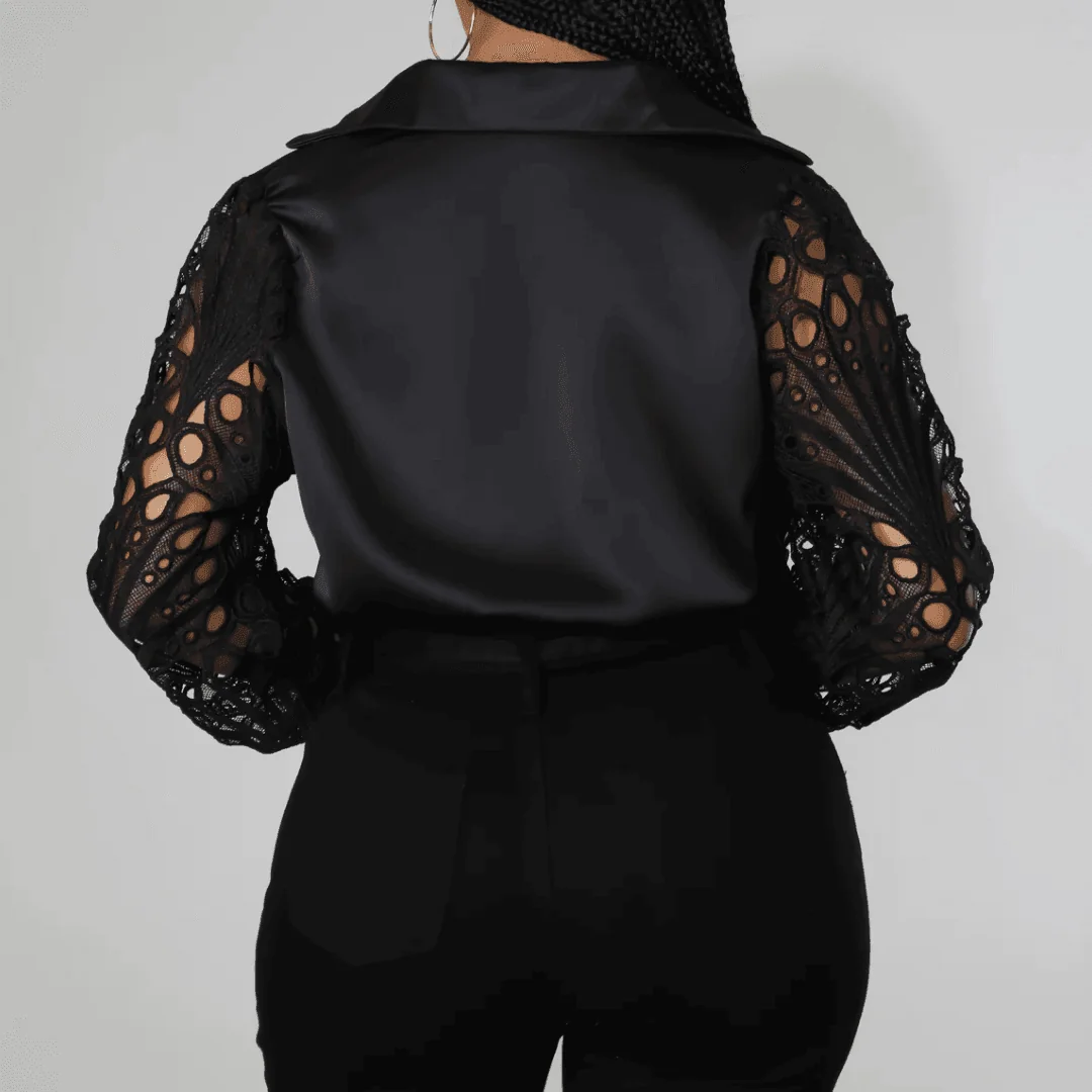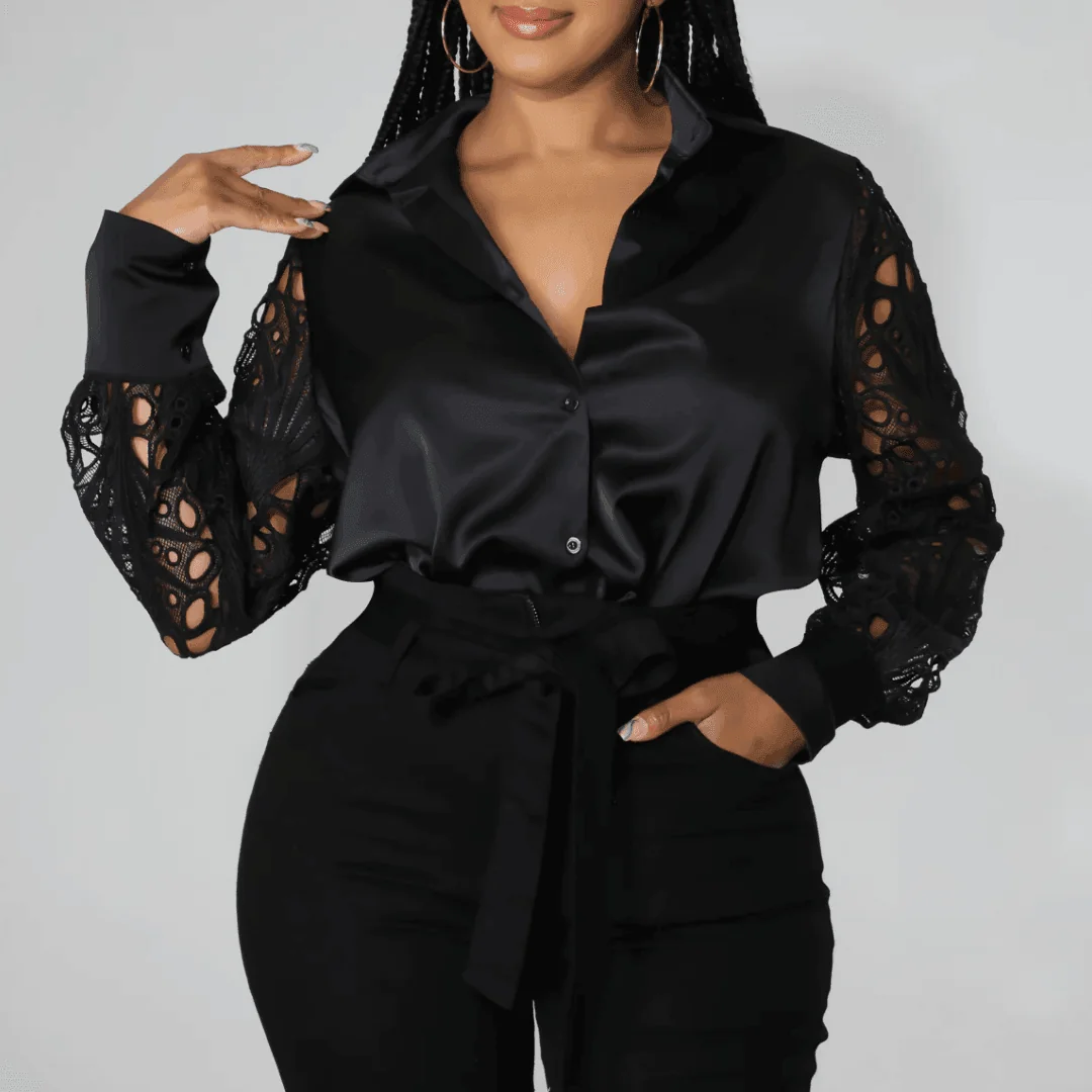 Experience sophistication with our Satin Lace Shirt in white and black options. Made from luxurious satin, this elegant blouse features intricate lace detailing, offering a refined appearance suitable for any occasion. Its soft feel and beautiful drape make it a versatile piece for both casual and formal wear. Discover how to elevate your fashion game effortlessly with our Lace Satin Blouse!