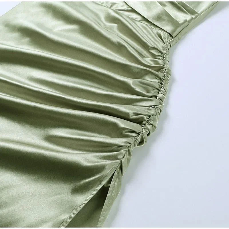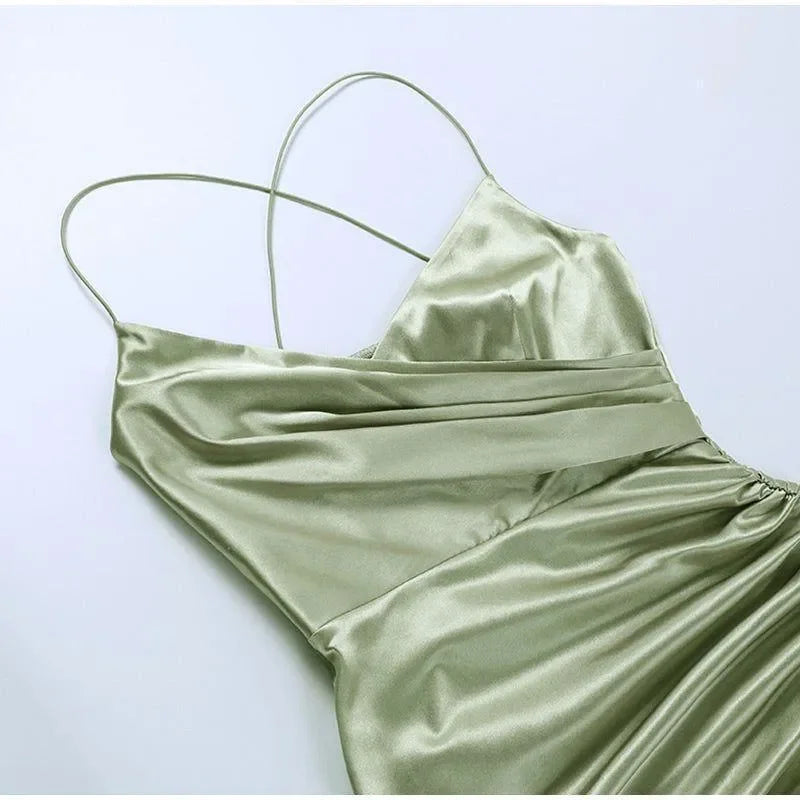 Step into elegance with our Elegant Satin Ruched Midi Dress. This sophisticated dress features a flattering ruched bodice, adjustable spaghetti straps, and drapes beautifully in soft satin fabric. Perfect for weddings, date nights, or elegant occasions. Transition from day to night with timeless charm. Find more inspiration on our Instagram @mermaid_way. Expertly crafted and Chiffon. Enjoy complimentary size exchanges if needed.