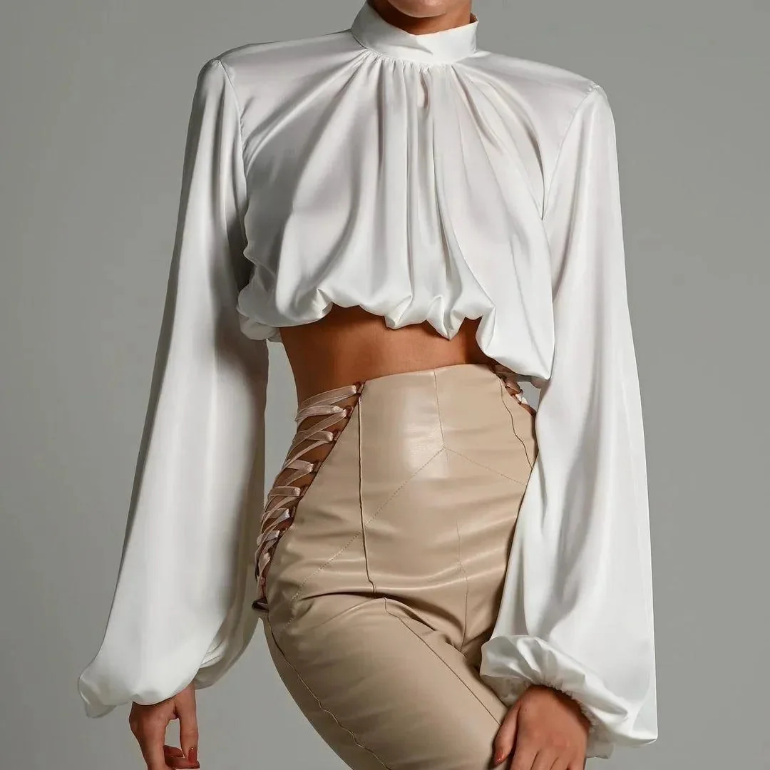 Step into elegance with the Puff Sleeve Satin Shirt, a must-have addition to your wardrobe. This sophisticated satin shirt features a stylish turtleneck and dramatic puff sleeves that exude glamour. Crafted from luxurious satin, it offers a smooth and comfortable fit suitable for any occasion. The lustrous fabric beautifully catches the light, enhancing its chic design. Ideal for both daytime and evening attire, this versatile shirt effortlessly complements a variety of bottoms. Elevate your look whether for a night out or to add sophistication to your workwear. Make a statement with this stunning shirt that blends style and comfort seamlessly. Find more fashion inspiration on Instagram @mermaid_way.