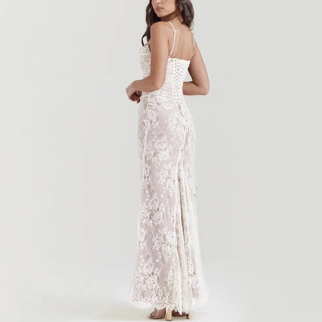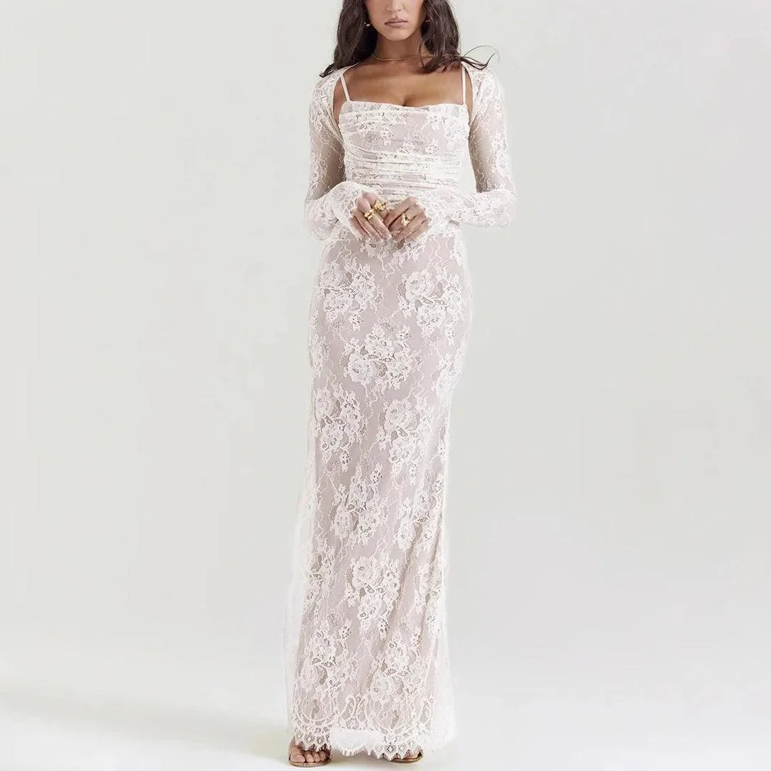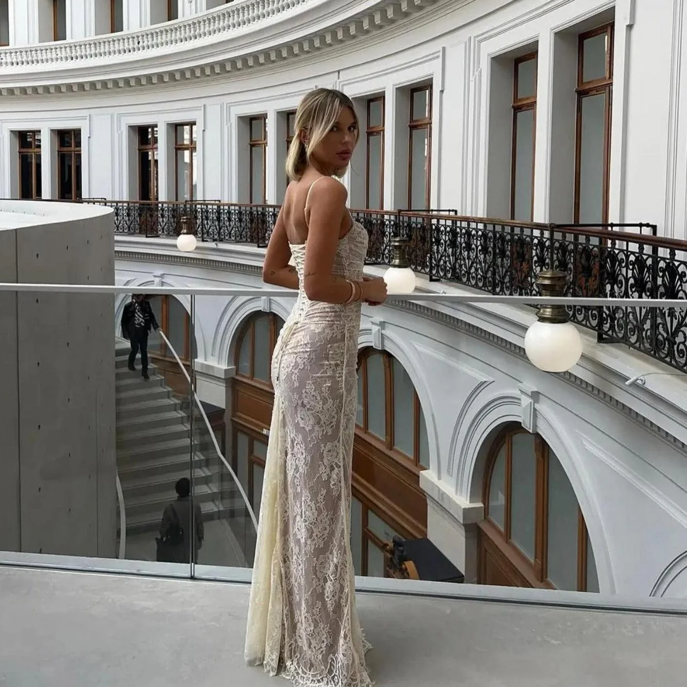 Indulge in timeless elegance with our Vintage Lace Maxi Dress in Ivory. Crafted from delicate stretch lace, this enchanting garment combines sophistication with a classic charm. The intricate lace detailing and flowing, floor-length silhouette create a stunning visual effect, making it perfect for special occasions, evening soirées, or elegant dinners. This fully lined dress is versatile and ideal for making a statement at formal events. Embrace classic beauty and enhance your collection with this exquisite piece that is bound to transform your wardrobe. Discover more style ideas on our Instagram @mermaid_way. Benefit from our complimentary size exchange if needed.