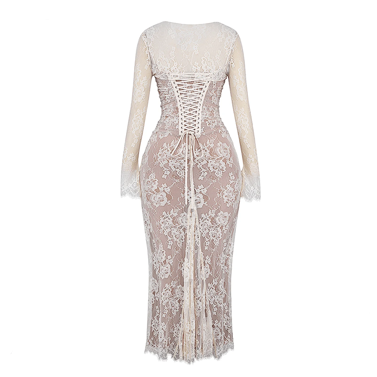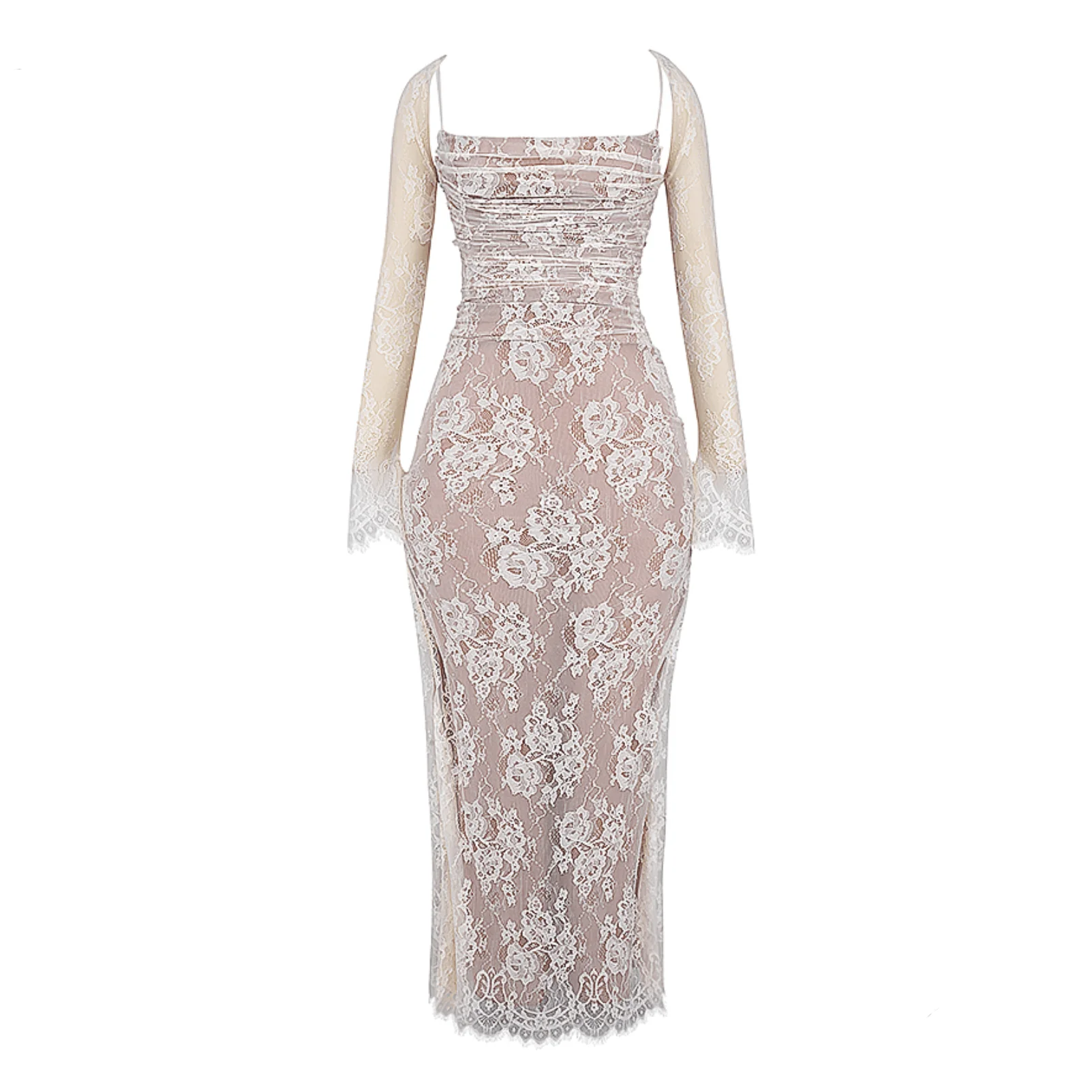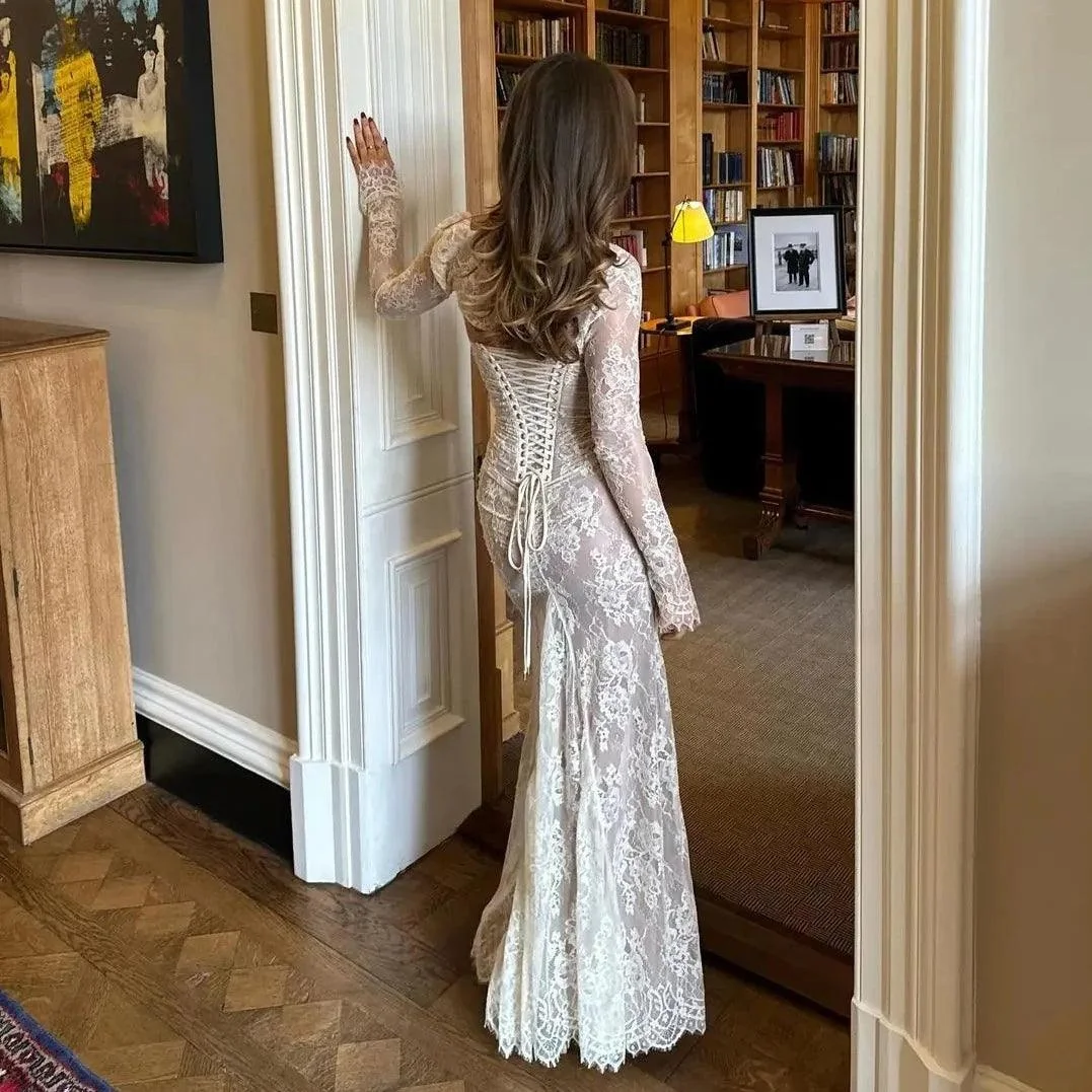 Indulge in timeless elegance with our Vintage Lace Maxi Dress in Ivory. Crafted from delicate stretch lace, this enchanting garment combines sophistication with a classic charm. The intricate lace detailing and flowing, floor-length silhouette create a stunning visual effect, making it perfect for special occasions, evening soirées, or elegant dinners. This fully lined dress is versatile and ideal for making a statement at formal events. Embrace classic beauty and enhance your collection with this exquisite piece that is bound to transform your wardrobe. Discover more style ideas on our Instagram @mermaid_way. Benefit from our complimentary size exchange if needed.