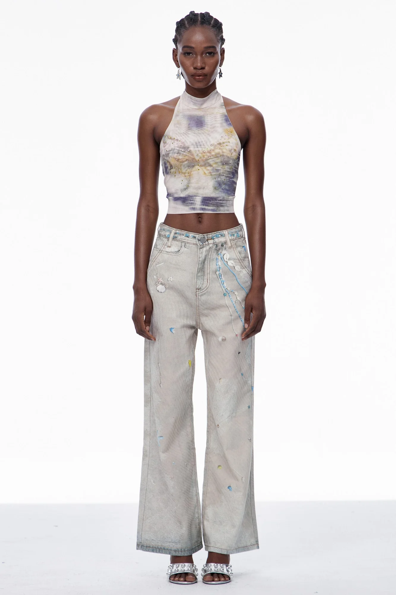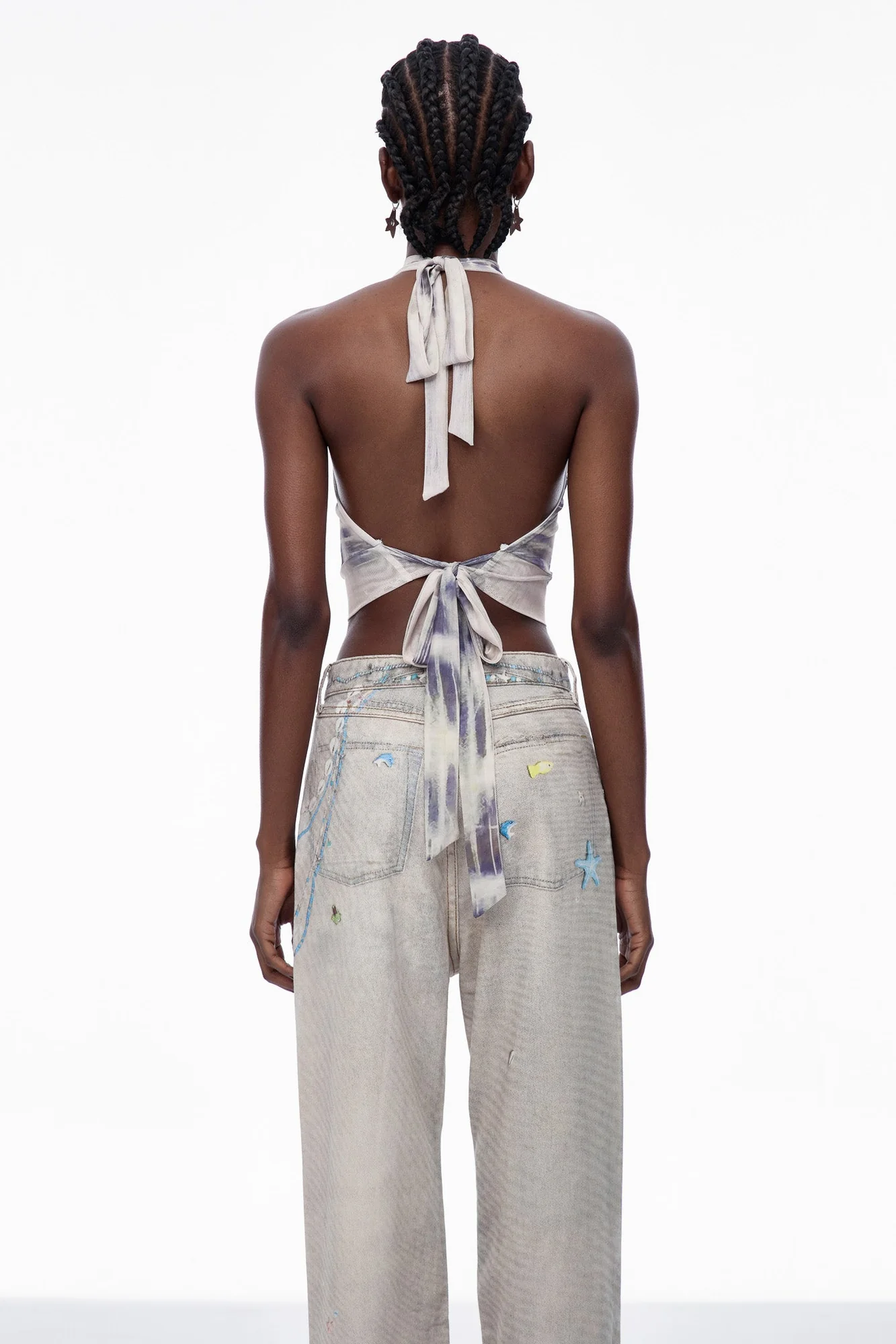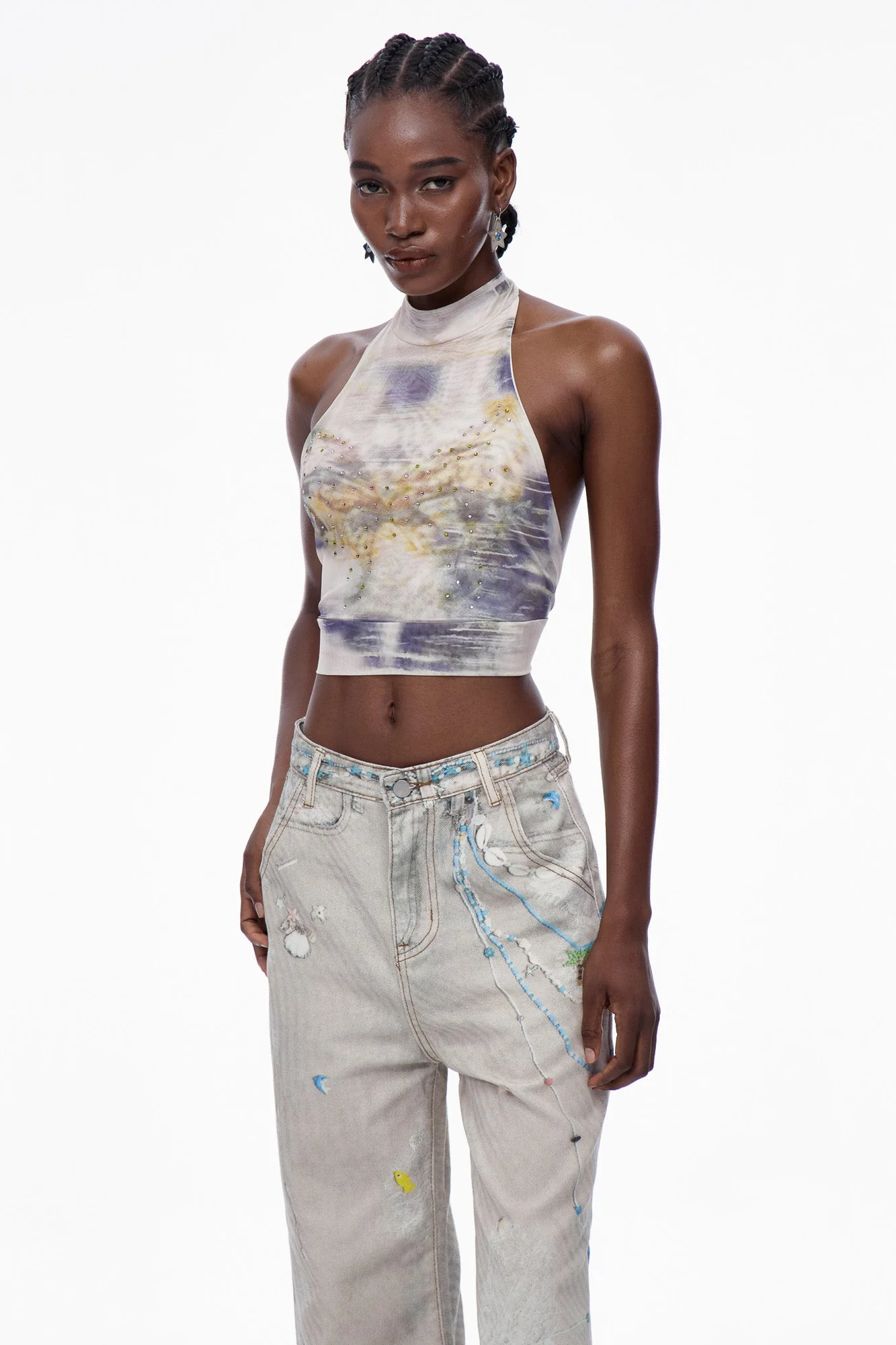 Indulge in the sophisticated charm of the white butterfly halter neck top . Crafted with meticulous attention to detail, this top boasts delicate butterfly-inspired accents and a figure-enhancing tailored fit. Whether for chic everyday looks or special events, this top guarantees style and comfort. Expertly crafted from premium materials for durability and a polished appearance that effortlessly stands out. Discover elegance and refinement with a subtle hint of stretch. This gentle machine-washable top is versatile and pairs effortlessly with various bottoms. Please note that actual product color may vary slightly due to image lighting.