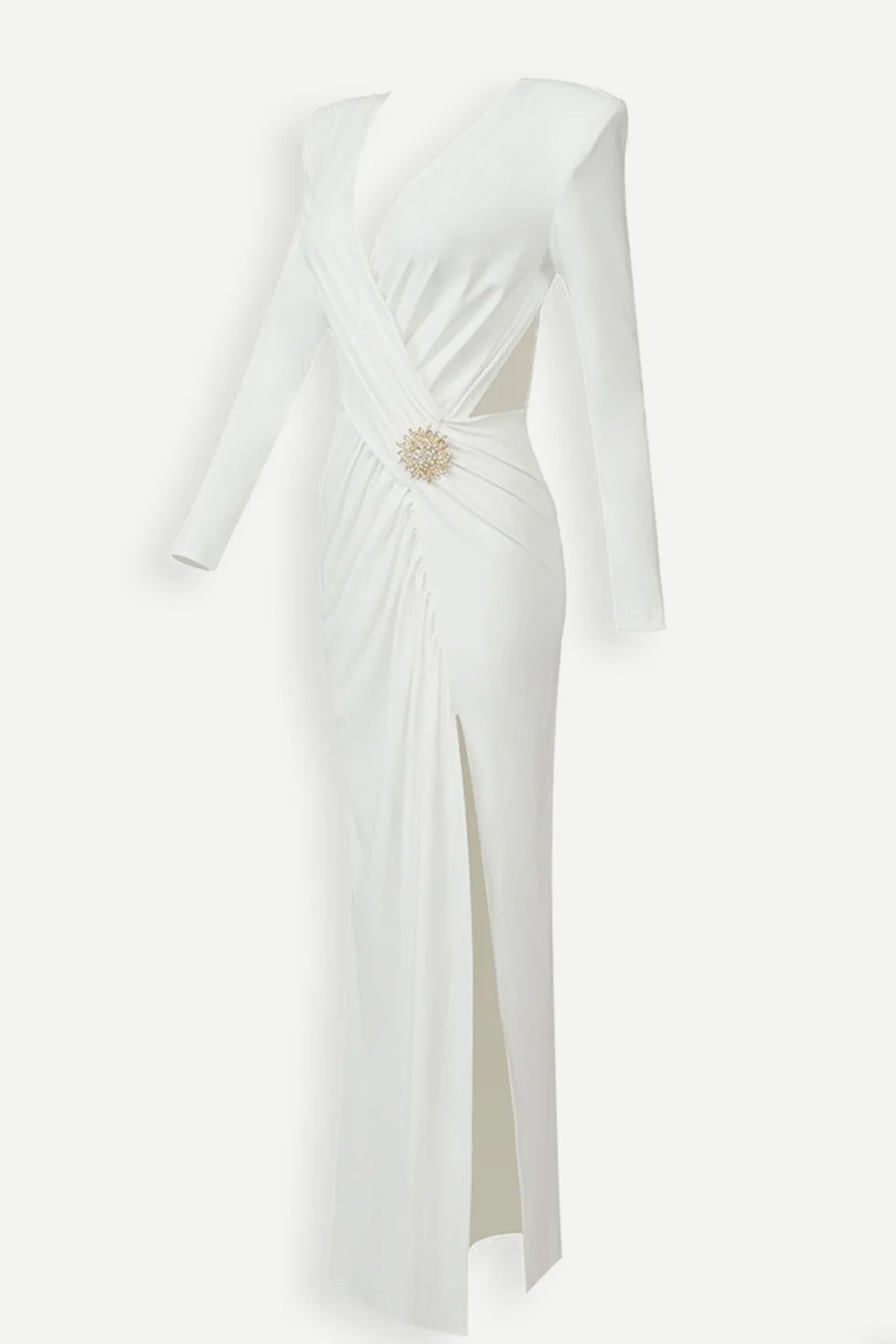 Indulge in the elegance of our White Crisscross Split Dress . Crafted from 100% Polyester, this dress showcases a stunning crisscross design for a touch of playful sophistication. Whether for formal events or casual outings, this wardrobe essential offers a perfect blend of comfort and style. With its low stretch factor, this dress gently hugs your curves to enhance your confidence and chic appeal. Care Instructions: Machine wash on gentle cycle. Note: Color may appear different due to lighting conditions. For the most accurate representation, refer to images without models.