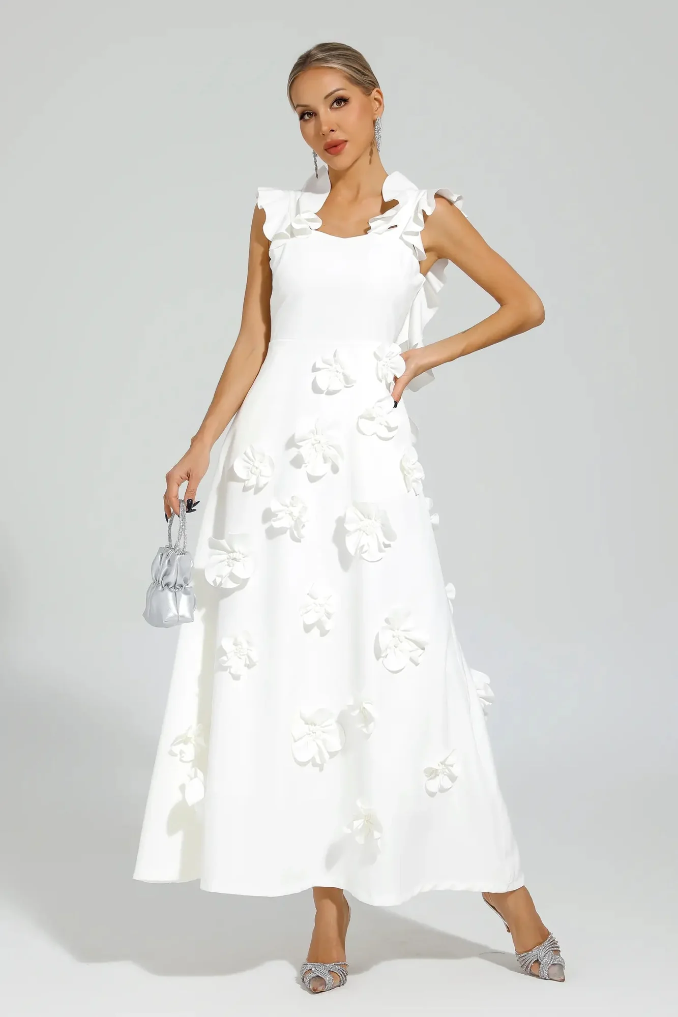 Elevate your style with the Pavati Flower Slip Dress in White. This slim-fit dress boasts a charming floral pattern, a flattering silhouette, and an enchanting open back design. Crafted from high-quality polyester, this dress is perfect for various occasions. With a length of approximately 130cm, it offers both sophistication and allure. The model, 5 ft 7, wears size S. Please refer to our size chart for the best fit. Color may vary slightly due to lighting. Embrace timeless elegance with this chic dress from Night Novas.