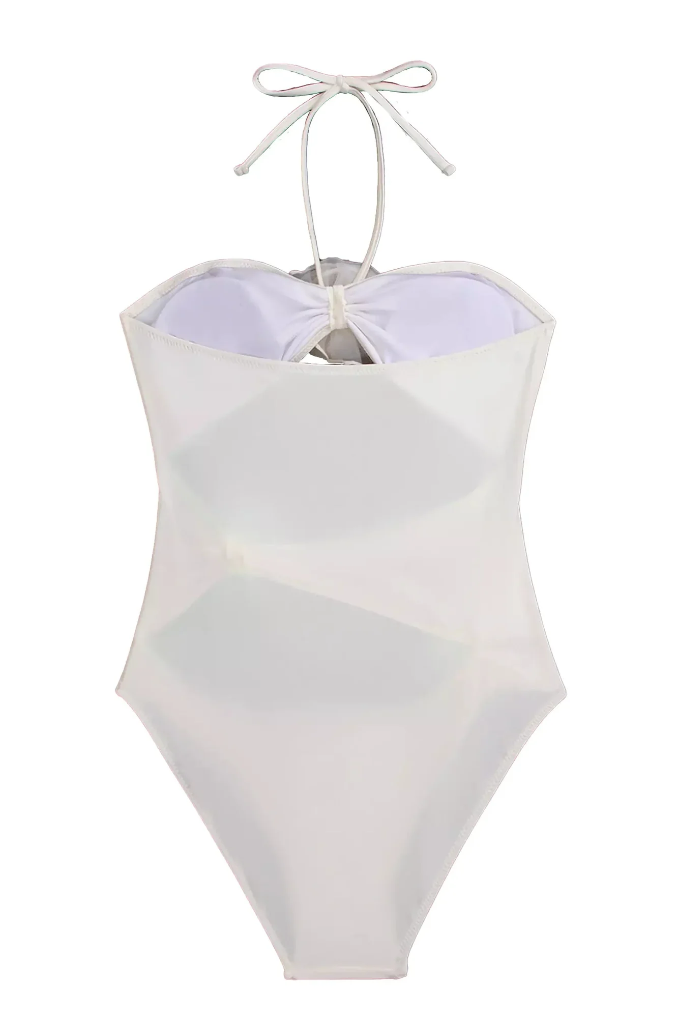 Dive into elegance with our exquisite Elegant White Roses Halter One-Piece Swimwear. Featuring a captivating 3D floral design, this swimwear adds femininity to your beachwear collection. The halter neckline ensures both style and comfort for any beach outing. Made of 100% Polyester with slight stretch for a perfect fit. Hand wash recommended. Model height: 5 ft 7, wears size S. Color variations may occur due to lighting. Refer to our size chart for the best fit as items run true to size.