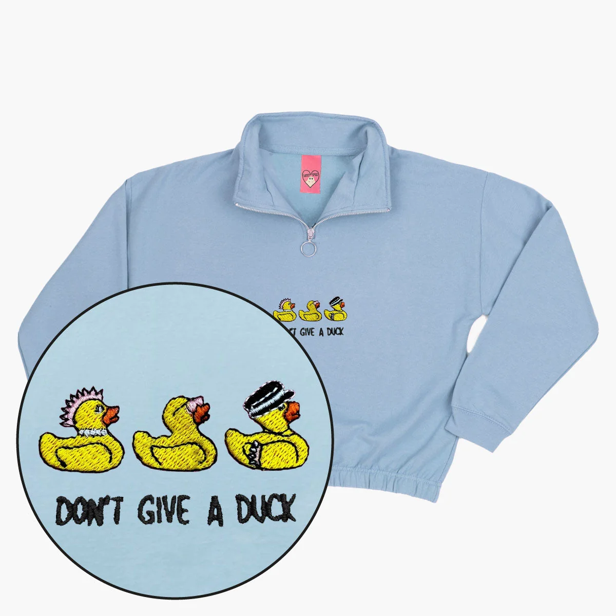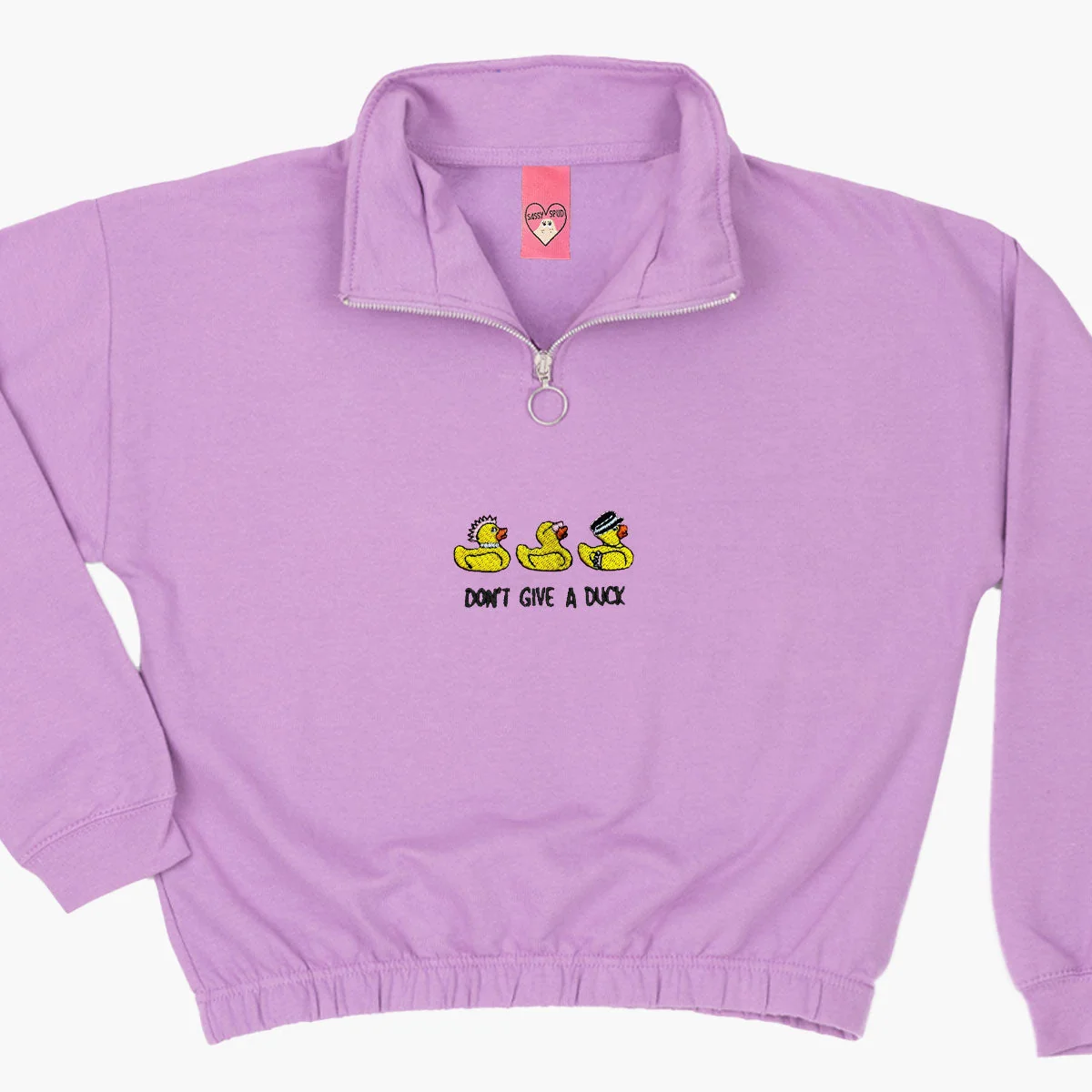 Experience the premium comfort of our 1/4 zip sweatshirt featuring a smooth cotton exterior and cozy fleece interior. Each sweatshirt is ethically crafted, embroidered to order to minimize waste, and WRAP certified for eco-conscious consumers. With a cute duck embroidered detail, this unisex sweatshirt offers both style and sustainability. Our eco-friendly packaging enhances the biodegradable appeal, while easy care instructions ensure lasting quality. Secure your purchase with Shopify Payments and Paypal, and enjoy our dedicated support for a worry-free shopping experience.
