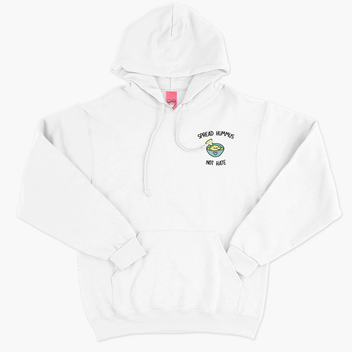 Indulge in comfort with our premium embroidered hoodie featuring smooth cotton outside and a cozy fleece interior. Ethically manufactured and embroidered to order to reduce waste. WRAP certified, PETA approved, and eco-friendly packaging for the conscious consumer. Express your love for hummus and the planet with this unique and stylish hoodie. Unisex fit with cute embroidery detail. Machine washable at 30 degrees for easy care. Enjoy secure transactions with Shopify Payments and Paypal. Our customer support team is dedicated to ensuring your satisfaction. Return or exchange policy available for peace of mind.