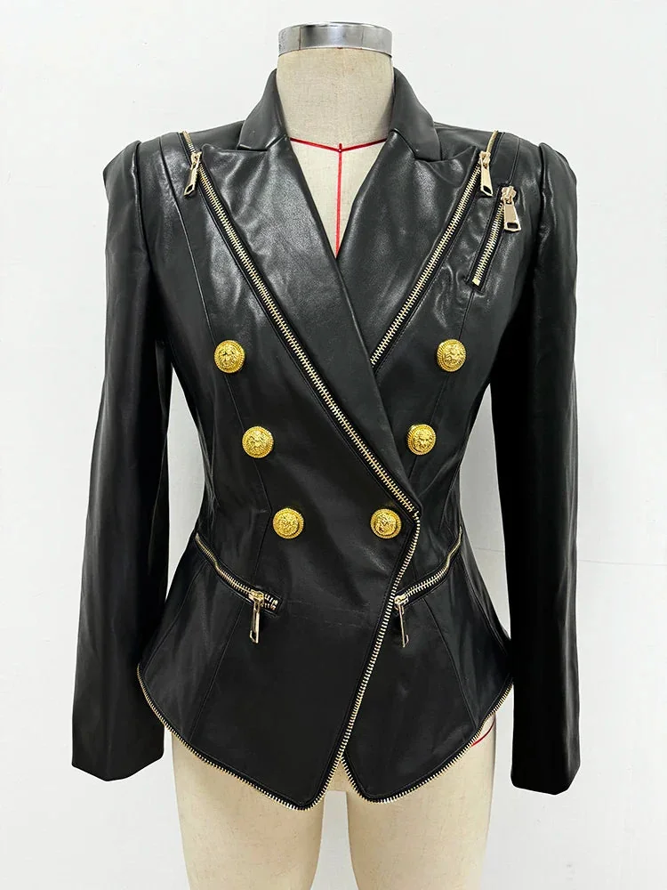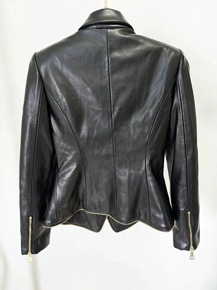 Indulge in elegance with our Limited Edition Womens Faux Leather Blazer. Crafted from a blend of premium faux leather and cotton, this showstopper exudes high-quality sophistication. Embrace trendsetting style with this exquisitely tailored blazer that guarantees to captivate onlookers. Discover a perfect fit with detailed size charts in both centimeters and inches, ensuring your utmost satisfaction with every wear. Elevate your wardrobe with this must-have pieces versatile collection.