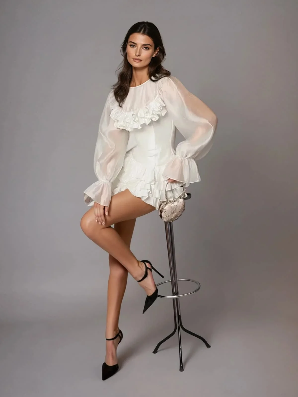 Elevate your style with the Fashionable Flare Sleeve Ruffle Mini Dress, available for pre-order in all sizes. Delight in its playful yet sophisticated silhouette, blending comfort with elegance. Made from 100% polyester, this dress with non-stretch features layered ruffle tiers and flare sleeves for a flattering fit that moves gracefully. Embrace charm and versatility in one piece. Shipping in 15-30 days. Order now!