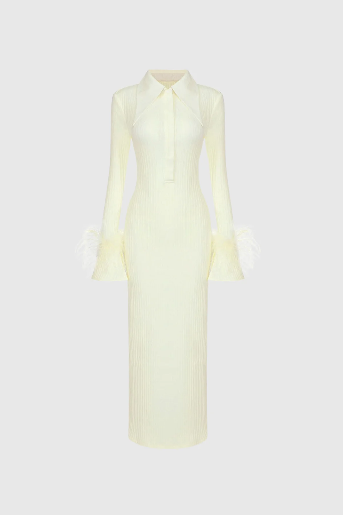 Indulge in the luxurious comfort of our Feather Knit Lapel Maxi Dress. Expertly crafted with a blend of 50% Polyester and 50% Cotton, this dress offers a slight stretch for a perfect fit. The lapel collar adds a touch of sophistication, making it ideal for any occasion. Elevate your wardrobe with this must-have piece that exudes elegance and charm. The color may vary due to lighting. Achieve a look thats both chic and comfortable with this timeless dress.