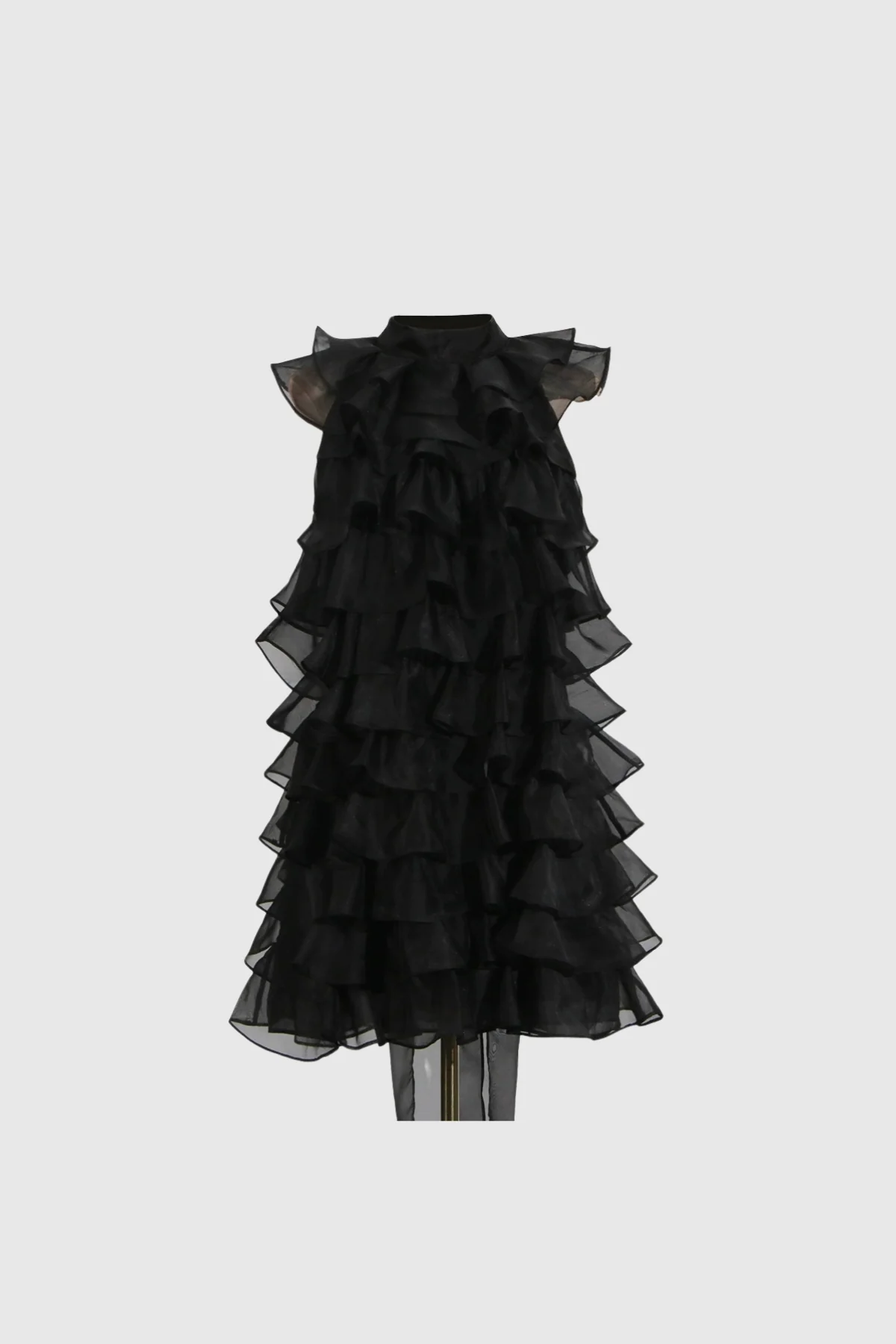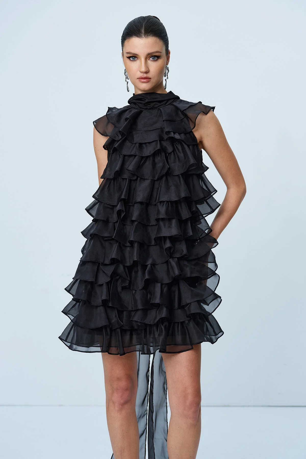 Elevate your style with the Ames Ruffle Ruch Sleeveless Mini Dress. This stunning black dress features exquisite ruffle and ruch detailing, adding a feminine touch to your wardrobe. Crafted from high-quality fabric, it ensures both comfort and style, making it a versatile choice for any occasion. The non-stretch material comprised of 50% Polyester and 50% Cotton guarantees a flattering fit. Care instructions include a gentle machine wash. Please note that color may vary slightly due to lighting effects. Choose this chic dress for a sophisticated and trendy look that is sure to turn heads.