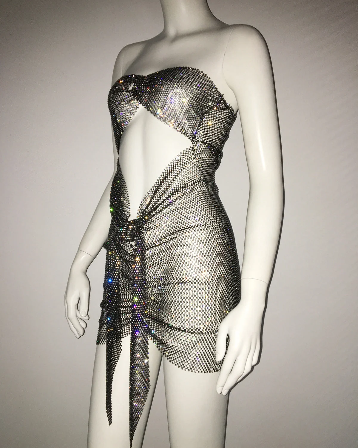 Make a bold statement with our Fierce Black Chainmail Mini Dress. Let your fashionable flair shine in this unique piece featuring intricate detailing. Crafted from 100% stainless steel mesh chainmail fabric, this non-stretch dress is perfect for a night out or special occasions. Please note that color may vary due to lighting. This dress is fully made of aluminum, requiring gentle care to preserve its beauty and integrity. Order processing time is 5-7 business days.