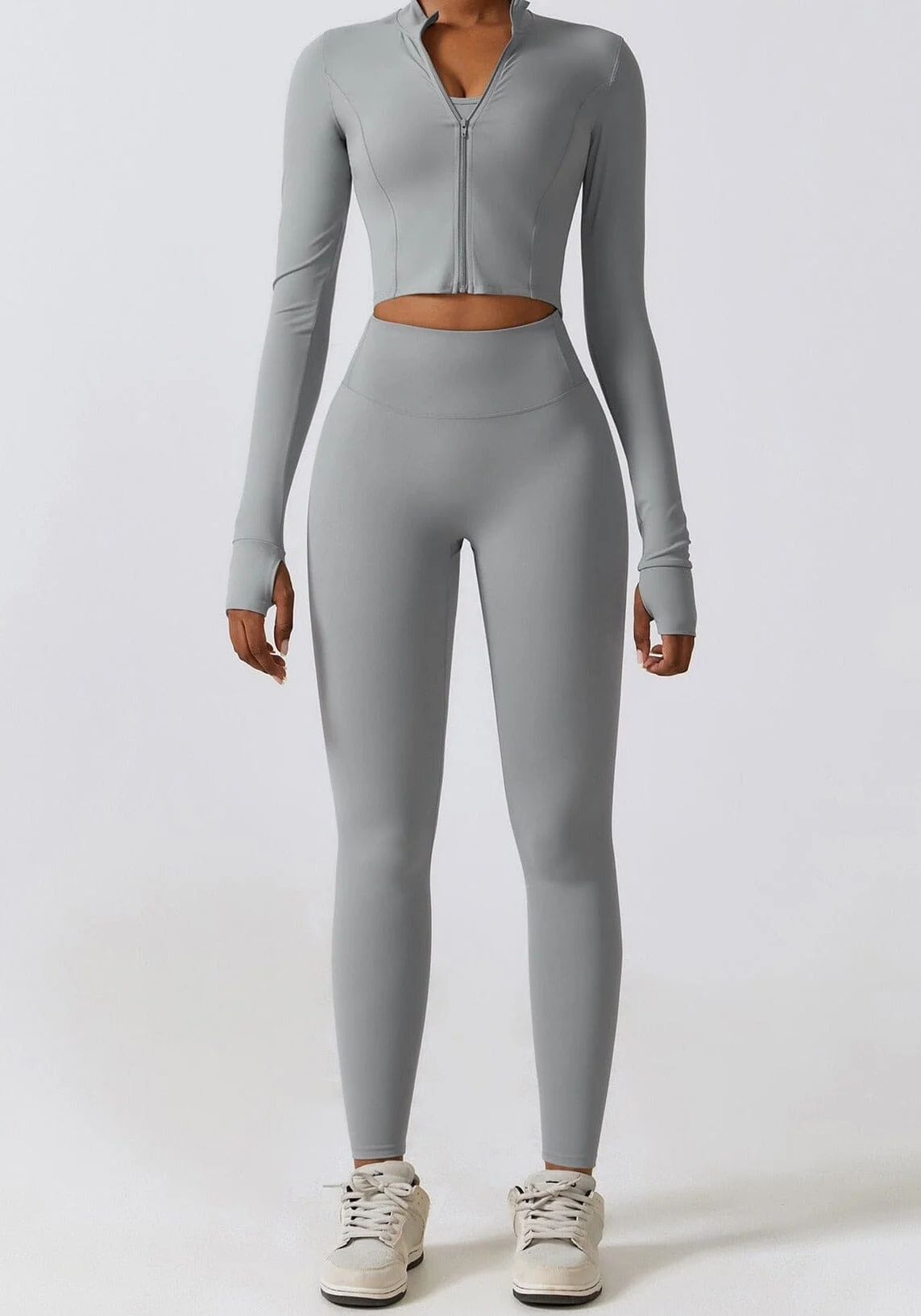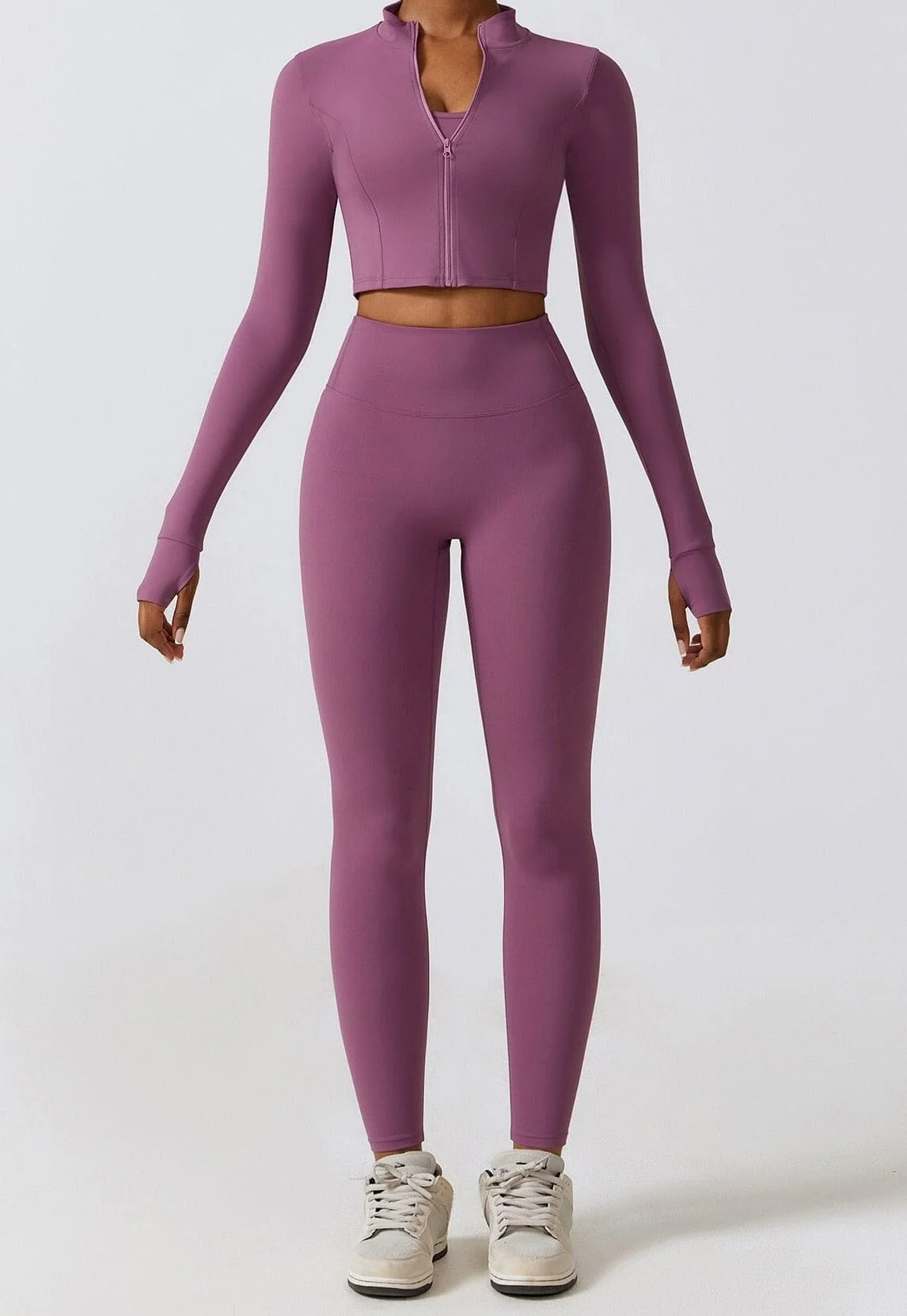 Upgrade your fitness wardrobe with our versatile three-piece activewear set, featuring comfortable leggings and a stylish top. Perfect for everyday wear, sports, yoga, and the gym. Crafted from 78% Nylon and 22% Spandex for optimal comfort and flexibility. Enjoy quick-drying, long-sleeve performance in this trendy set. Feel empowered with our trendy designs and claim your body goals effortlessly. Stay motivated with our exclusive set, promoting a fit and healthy lifestyle. Experience high waist and breathable materials designed for fitness enthusiasts. Achieve a perfect body while enjoying optimal comfort. Look stylish and fashionable while working out, promoting a healthier you every day. Stay trendy, stylish, and motivated on your fitness journey with Starlethics!
