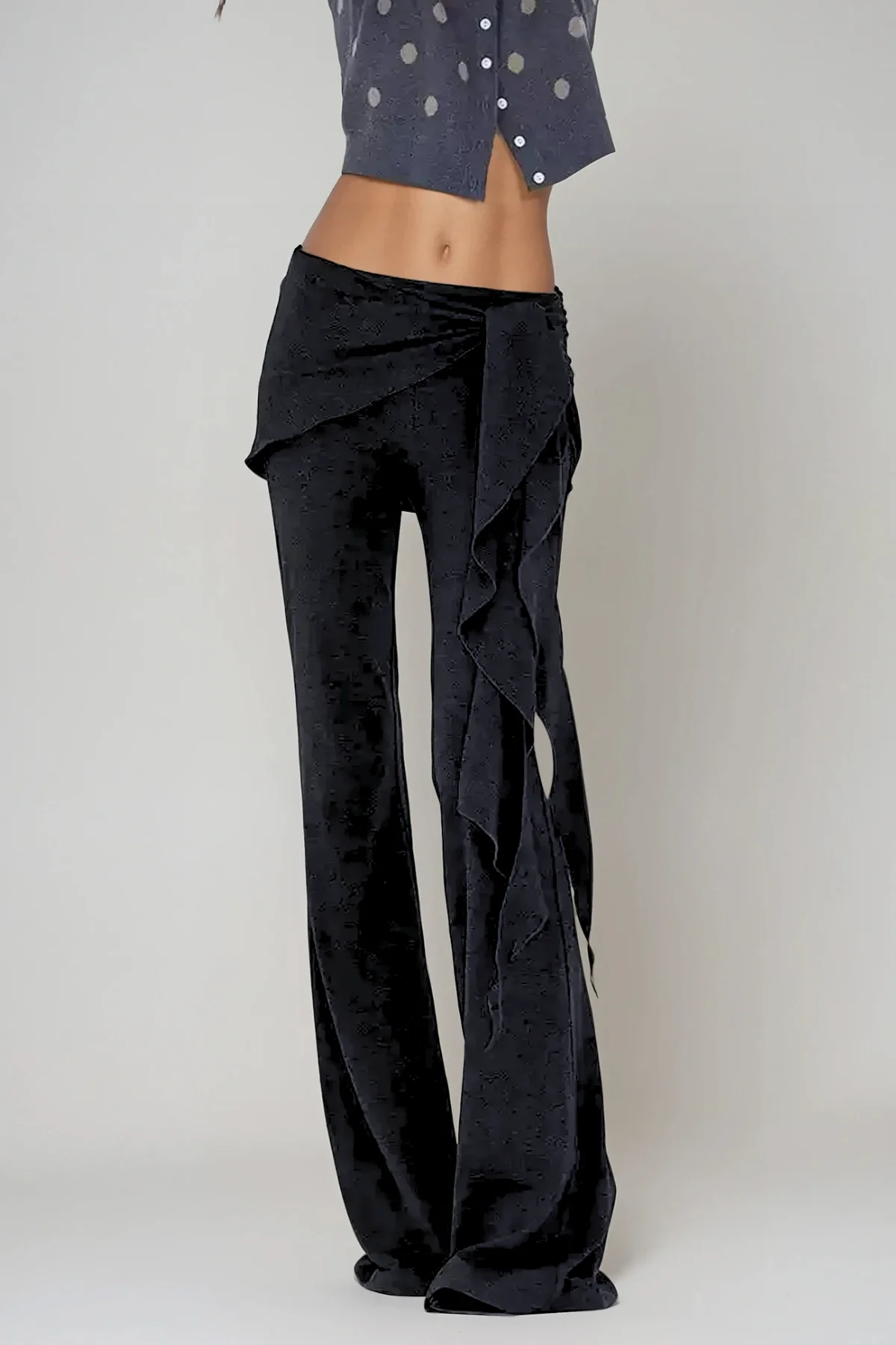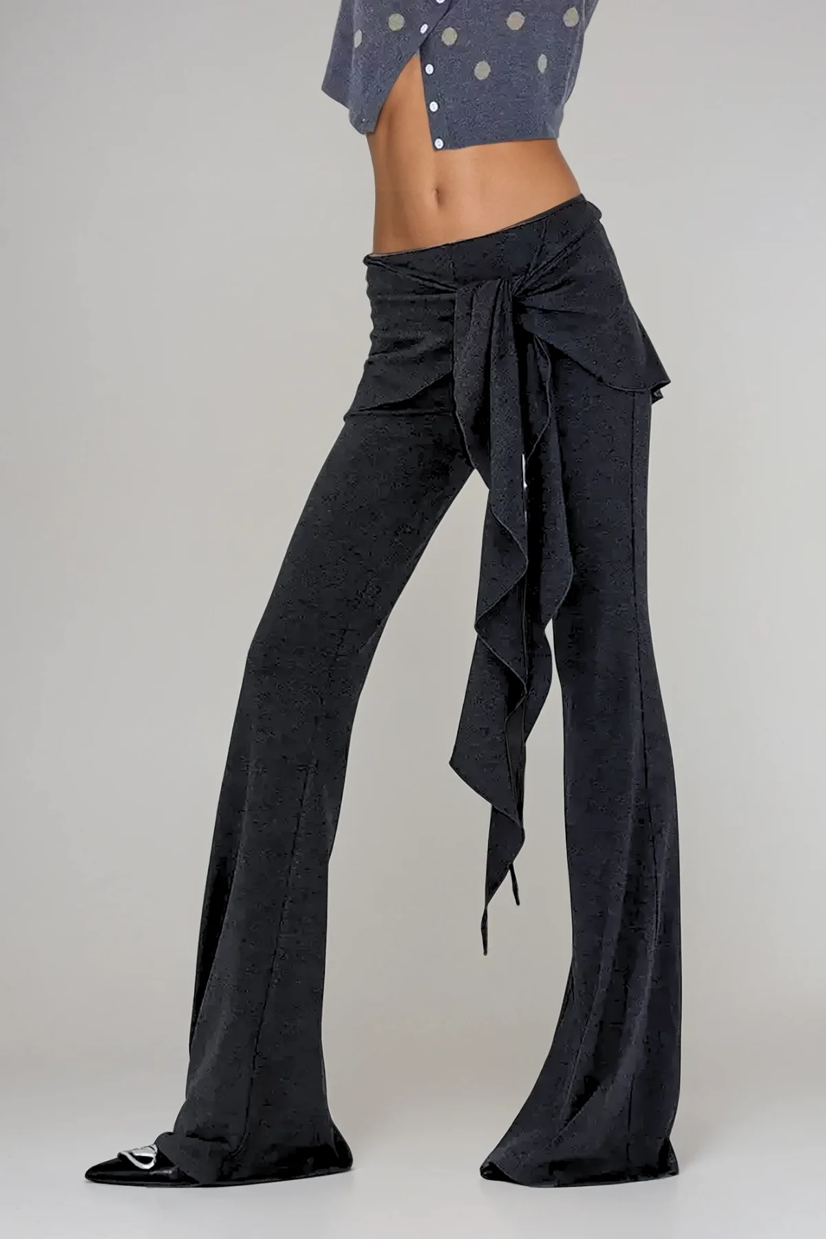 Upgrade your wardrobe with our Flared Black Skinny Pants with Knot Detail. Perfect for any occasion, these pants offer a flattering fit and stylish design crafted from high-quality 50% Polyester and 50% Cotton blend. Experience durability and sophistication with a slight stretch for added comfort. Elevate your fashion game effortlessly. Clean with gentle machine wash. Please note that color may vary due to lighting. Discover the chic essential youve been looking for!