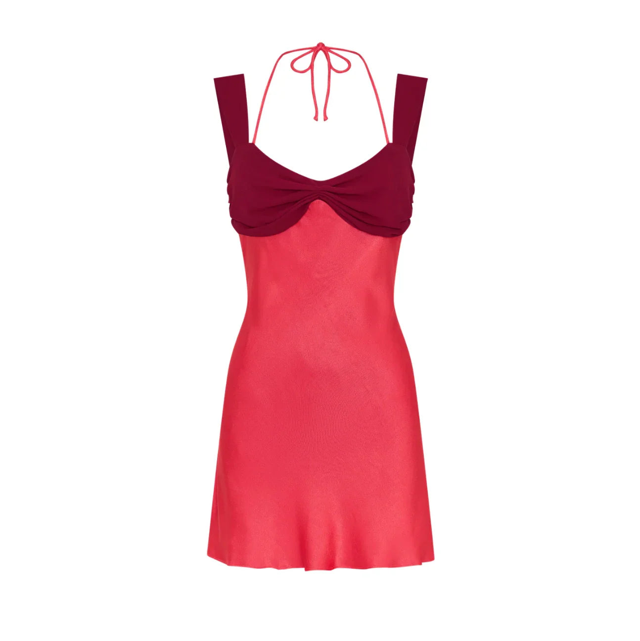 Elevate your style with the Flared Hem Contrast-Color Mini Dress . This mesmerizing dress features a ruched bust, halter neck tie, princess shoulder straps, and a lace-up back with an elasticated lower panel for the perfect fit. The mini length and slightly flared hem add a playful touch to the bold contrast color design. Step into any event with confidence and allure. Discover more fashion ideas on Instagram @mermaid_way. Enjoy a hassle-free exchange for a different size if needed.