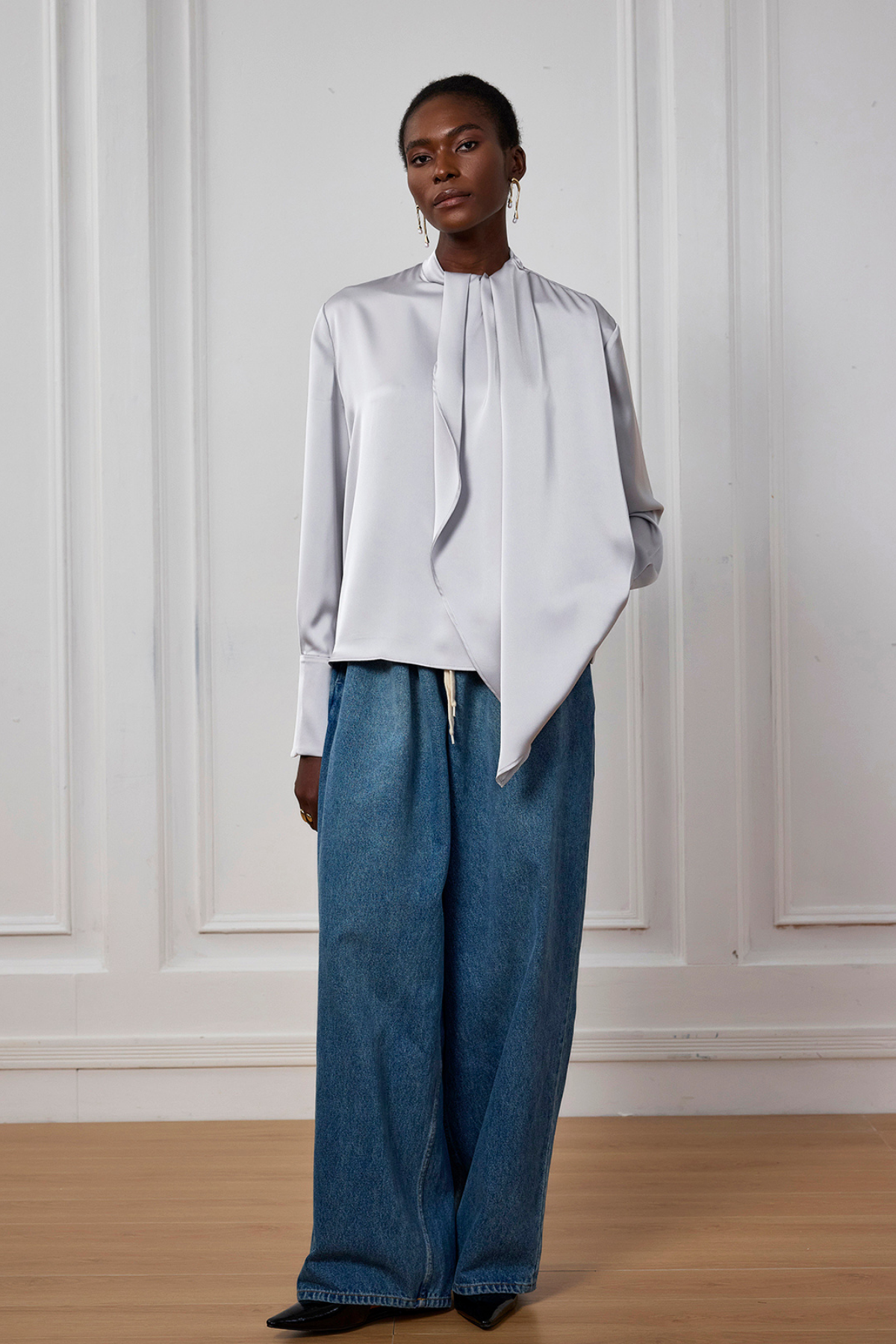 Indulge in the expertly crafted Raquel Ruch Wide Jeans featuring a curved waistband and ruched detailing for a flattering fit and comfortable wear. These jeans, made from quality denim fabric, are a chic essential in any wardrobe offering versatility and style in one. Elevate your confidence with these non-stretch wide leg jeans that add a touch of uniqueness to your look. Material: 100% Polyester. Stretch Factor: Non-Stretch. Care Instructions: Gentle machine wash. Please note, color may vary slightly due to lighting effects. Without the model, the closest representation of the true product color is shown.
