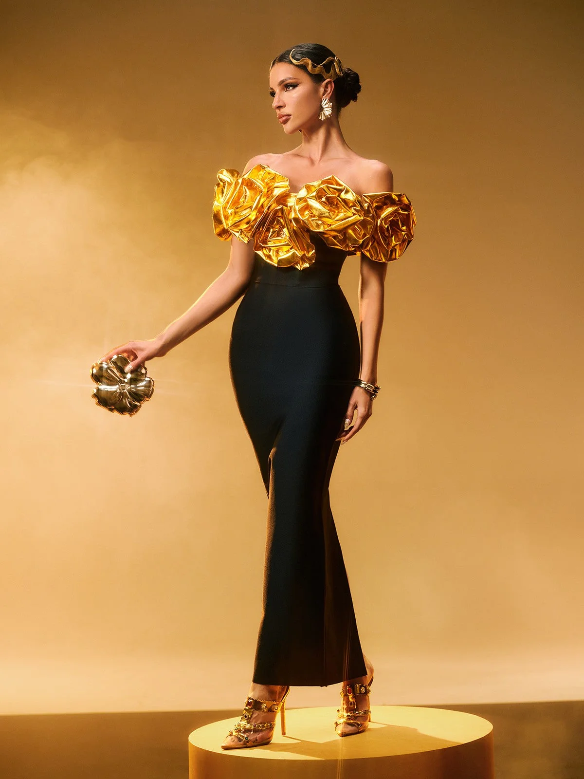 Elevate your style with our elegant Floral Bandage Off-Shoulder Party Dress! Featuring a charming off-shoulder design and figure-flattering bandage material with delicate floral accents, this dress is perfect for special occasions. Stand out in the crowd and exude confidence with this head-turning piece. Made of 95% Polyester and 5% Spandex, this dress offers high stretch for all-day comfort. The invisible zipper at the back ensures a seamless fit. Dry clean only. Please note that actual color may vary due to lighting. Model is showcasing Size S.