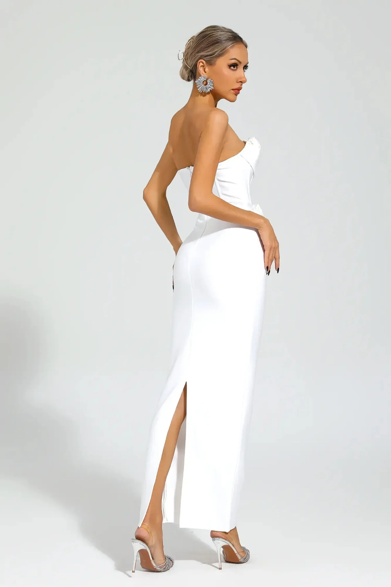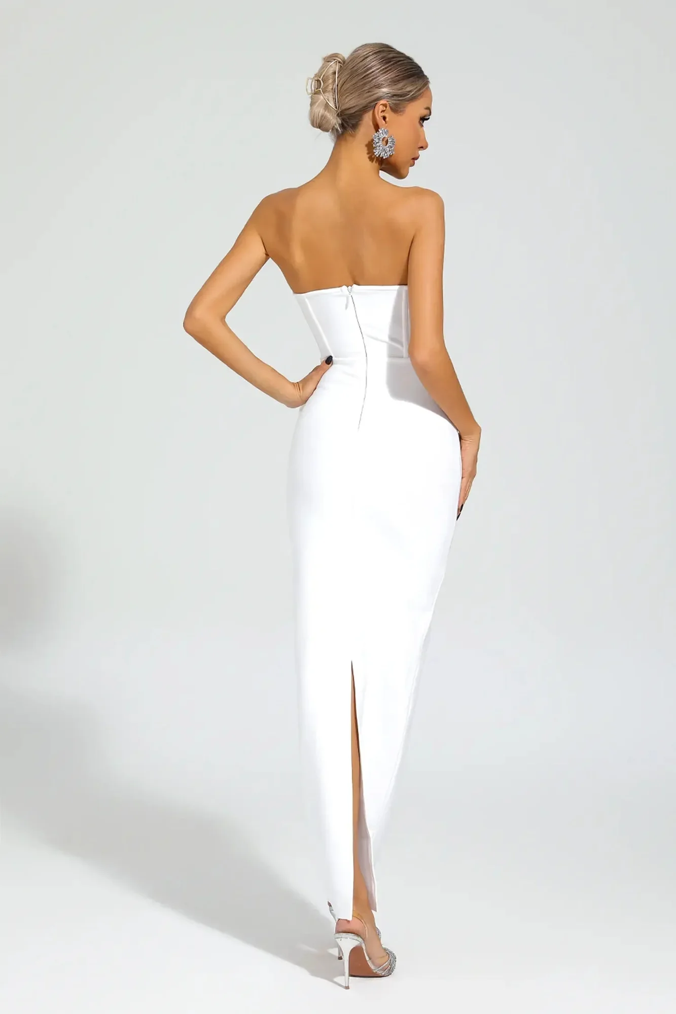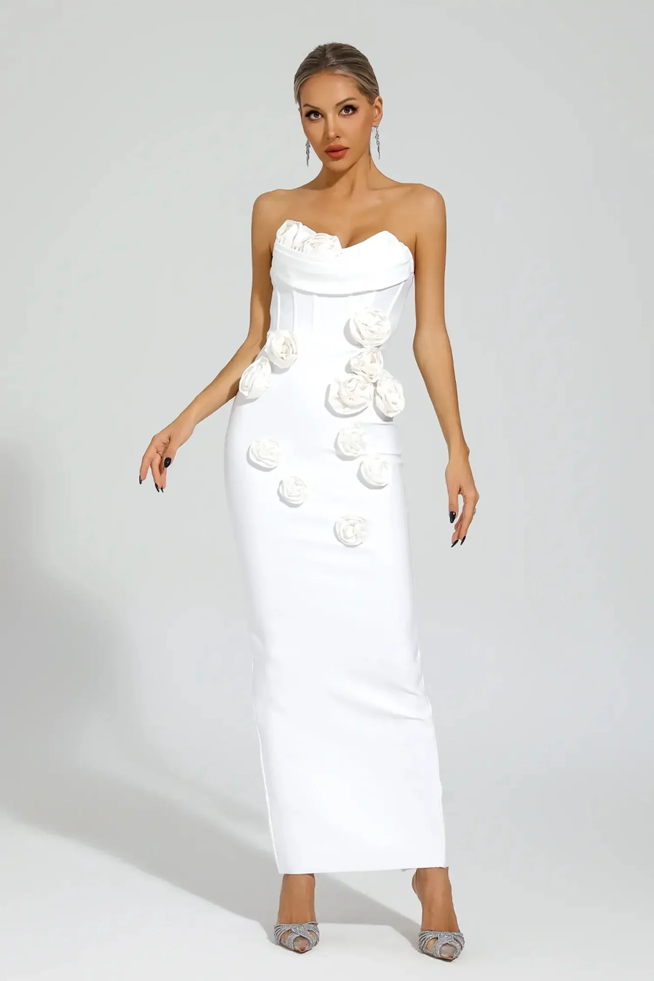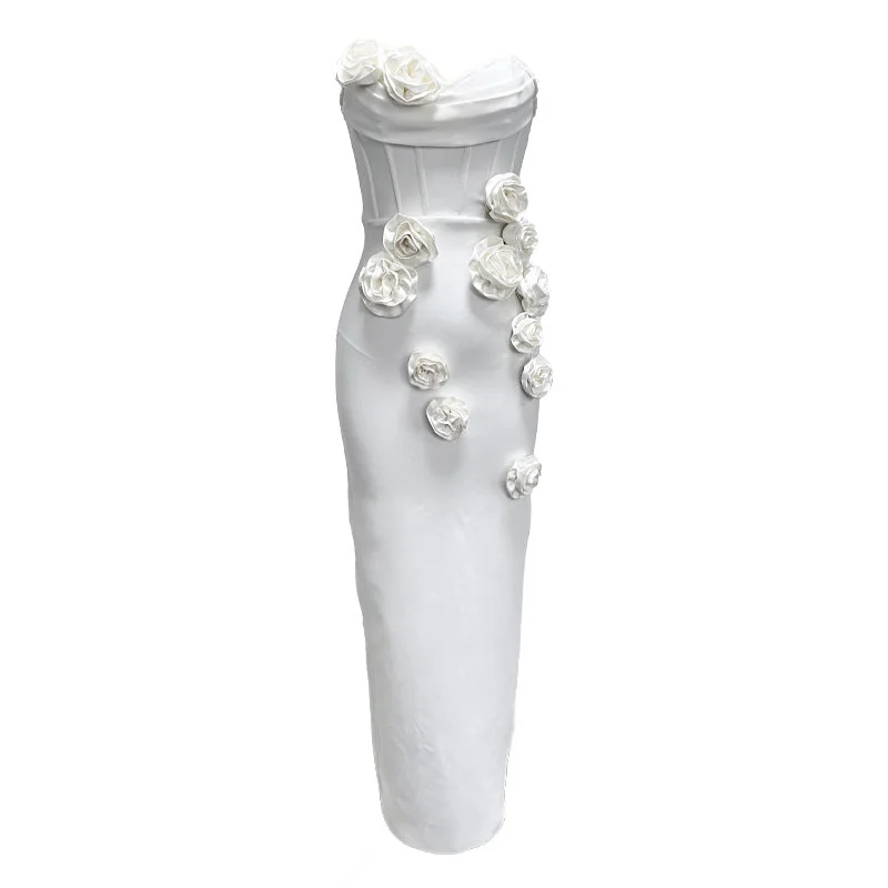 Elevate your wardrobe with this must-have Floral Bandage Strapless Dress made from premium materials (95% Polyester, 5% Spandex) for a comfortable, secure fit. The invisible zipper provides a sleek look. With a unique flower design, this dress ensures you stand out in any crowd. Enjoy the high stretch factor for all-day wear. This versatile piece is easy to clean and runs true to size according to our chart. Add a touch of elegance that will turn heads everywhere you go. Available in sizes S, M, and L. Get yours now!