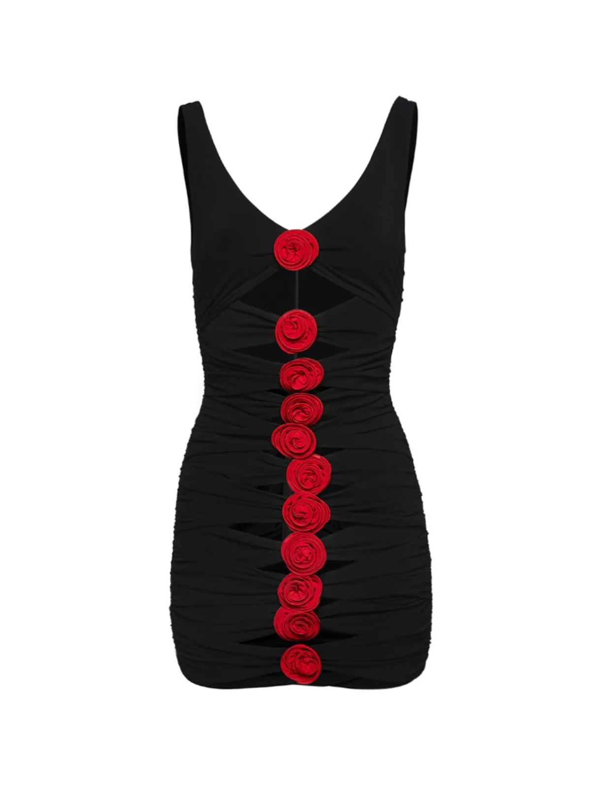 Discover elegance and playfulness with our Floral Cutout Mini Dress. This must-have piece features delicate cutouts and a charming flower print, perfect for special occasions. Show off your unique style and turn heads effortlessly. Crafted from 100% Polyester with slight stretch for comfort. Includes an invisible zipper at the back. Gentle machine wash recommended. Please note, color may vary due to lighting. Get ready to stand out!