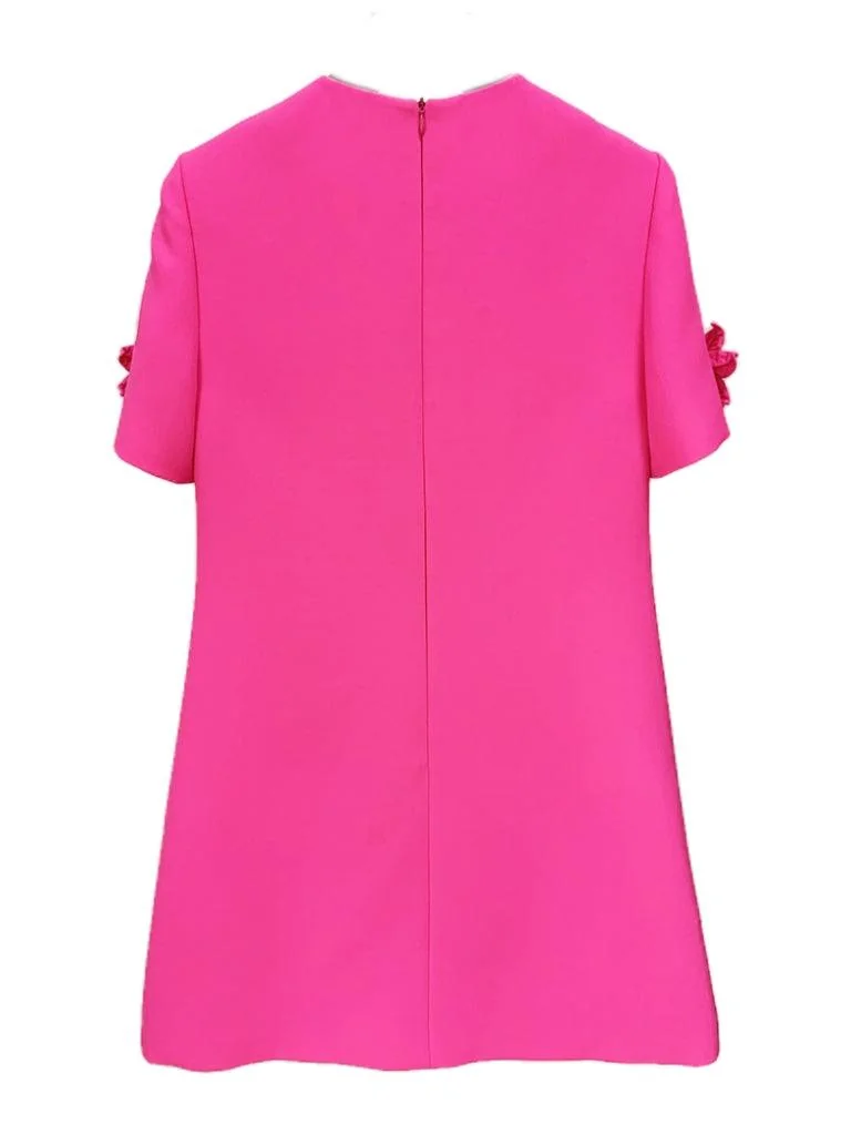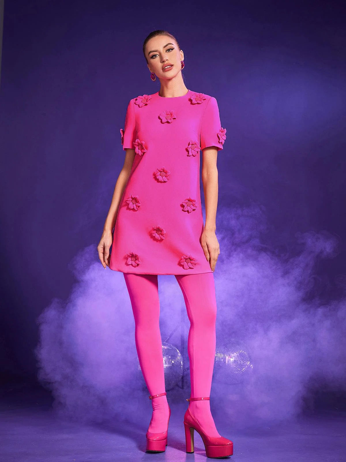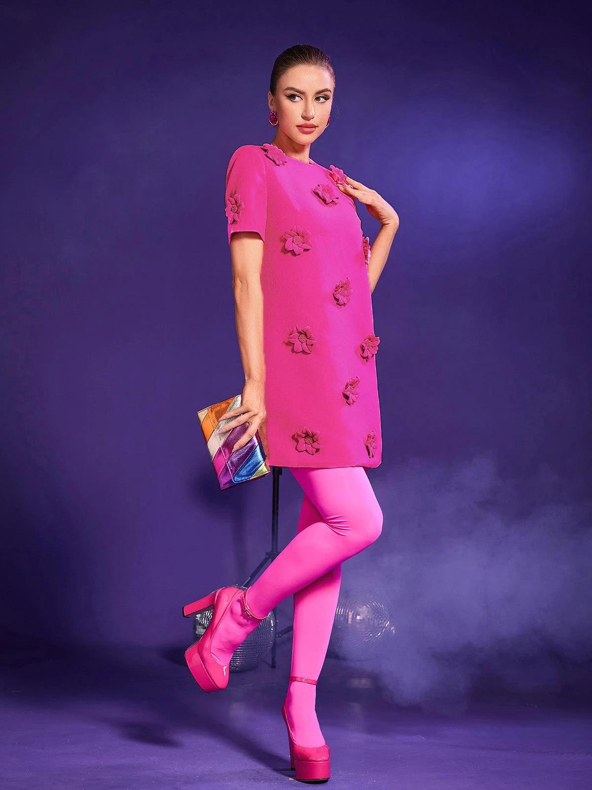 Indulge in the chic elegance of this Floral Embellished Mini Dress. Crafted from 100% Polyester, this non-stretch dress offers exceptional comfort. Perfect for any occasion, the beautiful floral embellishments add a touch of sophistication. Make a classy fashion statement while staying comfortable and stylish. Please note: Color may vary slightly due to lighting. Dry clean only.