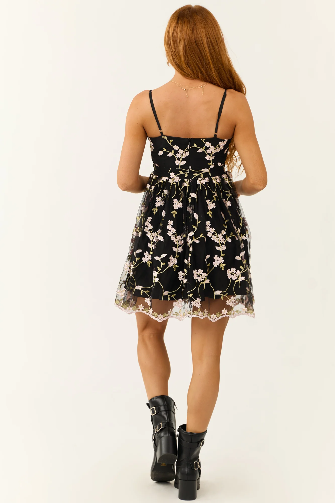 Indulge in elegant charm with our Floral Embroidered Black Lace Sleeveless Mini Dress. Available in sizes Small, Medium, and Large. Featuring a deep sweetheart neckline, adjustable spaghetti straps, and a back zipper closure. Crafted from 100% Polyester with a 95% Polyester, 5% Spandex lining for comfort and style. Perfect for date nights or a night out, this dress complements your silhouette with a length of 32″ to 34″ and bust sizes from 32″ to 36″. Embrace the beauty of the embroidered sheer mesh lace floral design in shades of Black, Blush, and Gold. Imported and easy to care for. Elevate your wardrobe with this stunning piece.