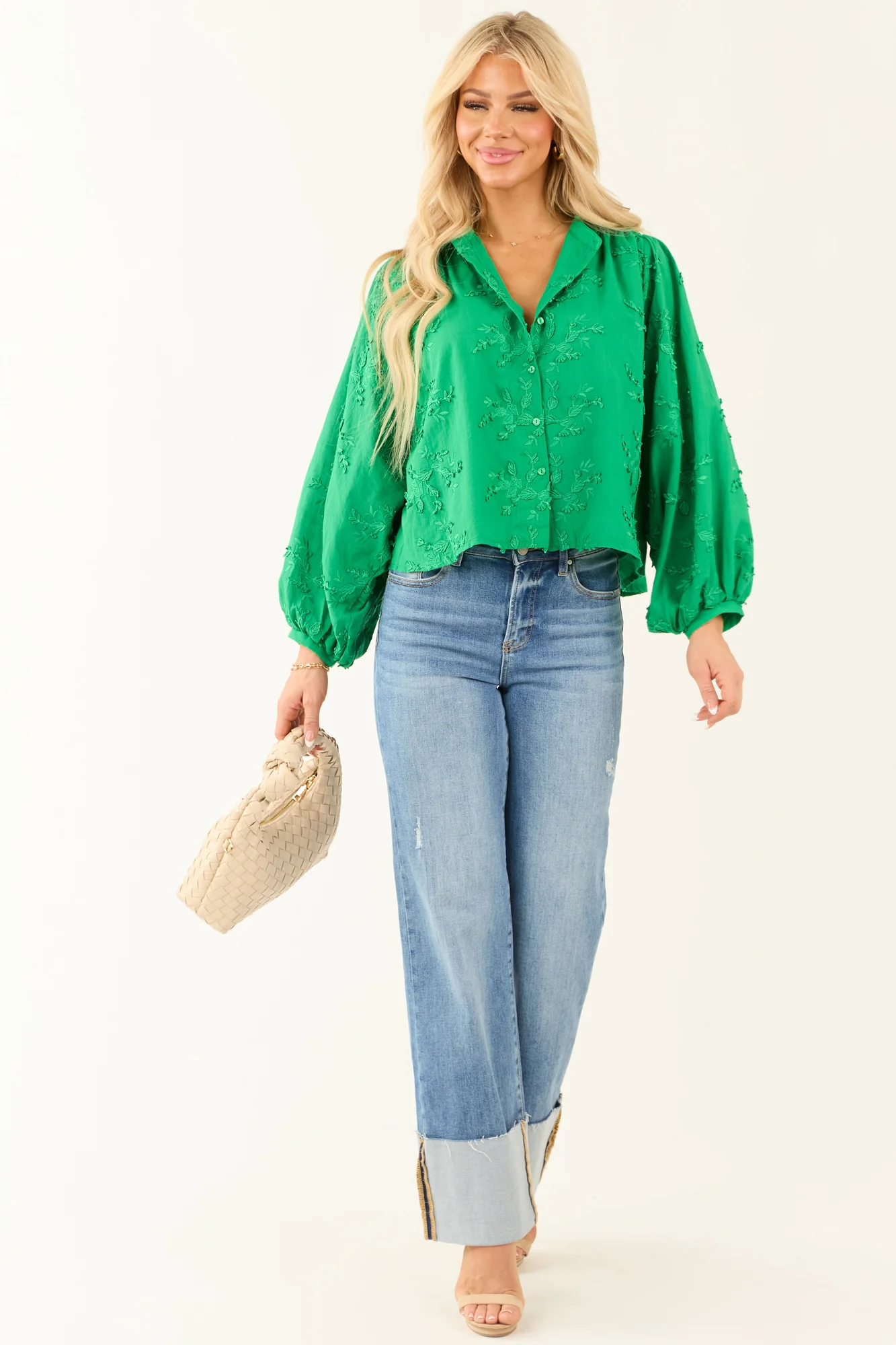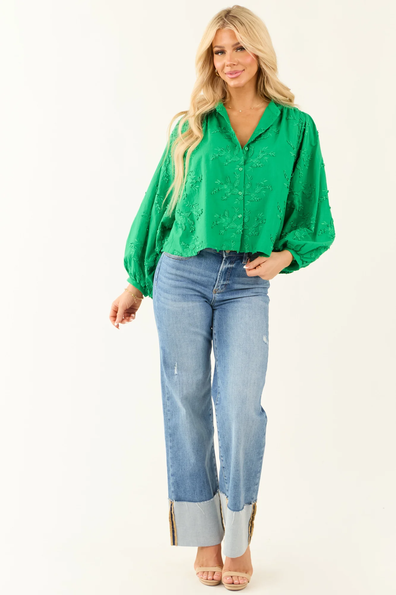 Elevate your style with our Floral Embroidery Button Down Sleeveless Top crafted from non-stretchy woven cotton. Featuring intricate floral embroidery, this top boasts a chic banded cuffs design and a comfortable fit. Perfect for casual or dressed-up looks. Care Instructions: Hand wash with cold water, line dry, do not bleach. Available in sizes S, M, and L.