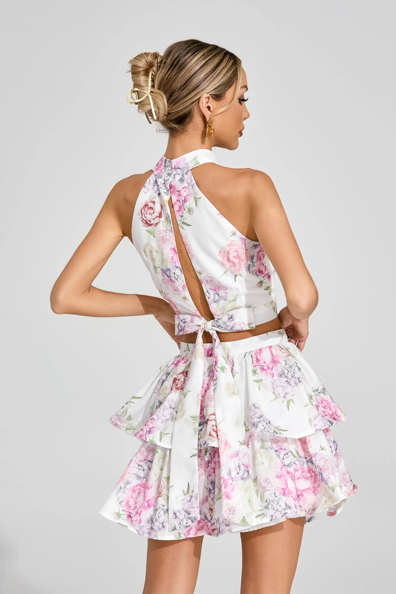 Indulge in romantic charm with the Floral Halter Crop Top and Ruffle Skirt Set by Dazrik. This captivating ensemble showcases a high-neck halter top and a tiered ruffle skirt, both beautifully adorned with a watercolor floral motif. The backless design with a whimsical bow detail exudes playfulness, making it an ideal choice for garden parties, summer weddings, or any event where you wish to radiate feminine grace. With a top length of approximately 34cm and a skirt length of around 43cm, crafted from polyester material requiring gentle dry cleaning, this set guarantees a stunning look. The model in the images is 57″ and is wearing size S. Please note that colors may vary due to lighting. The product images without a model provide the closest representation of the true colors. This item fits true to the size chart provided, so refrain from sizing up or down for the most flattering fit. Refer to our size chart for optimal sizing.