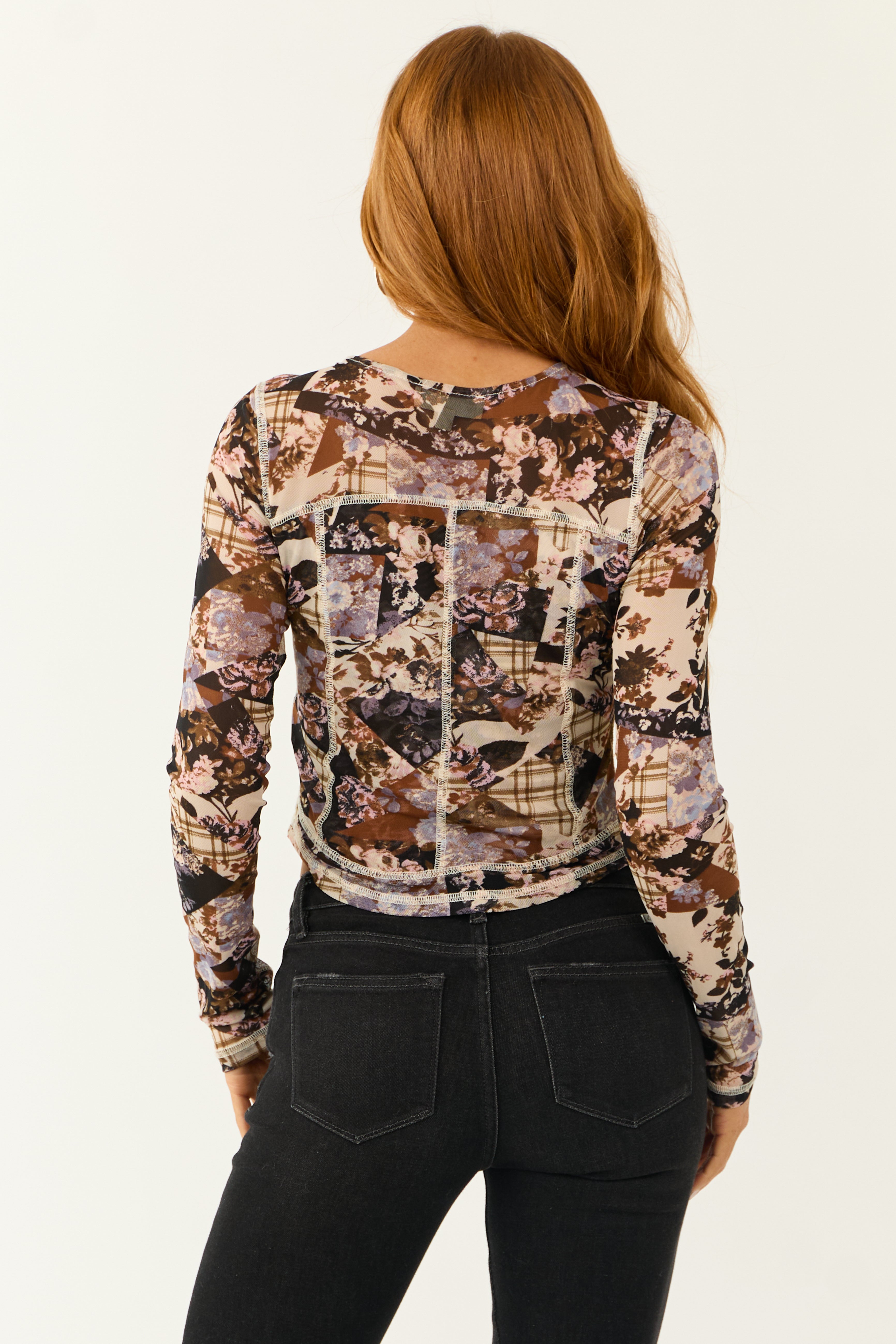 Enhance your wardrobe with this stunning Floral Mesh Almond Long Sleeve Top available in sizes S, M, L, and XL. Crafted from stretchy mesh fabric with intricate floral patchwork in Sepia, Blush, Black, Powder Blue, Iris, and Coffee tones. Featuring a round neckline and a curved hemline for a stylish look. This top is unlined and made of 95% Polyester and 5% Spandex for comfort and durability. Ideal for date nights, this top is perfect for fall and winter seasons. Please note, each piece may vary slightly due to the cutting and sewing process. Hand wash in cold water, do not bleach, line dry, and iron on low. Model is wearing a size Small. Elevate your style effortlessly with this trendy staple!
