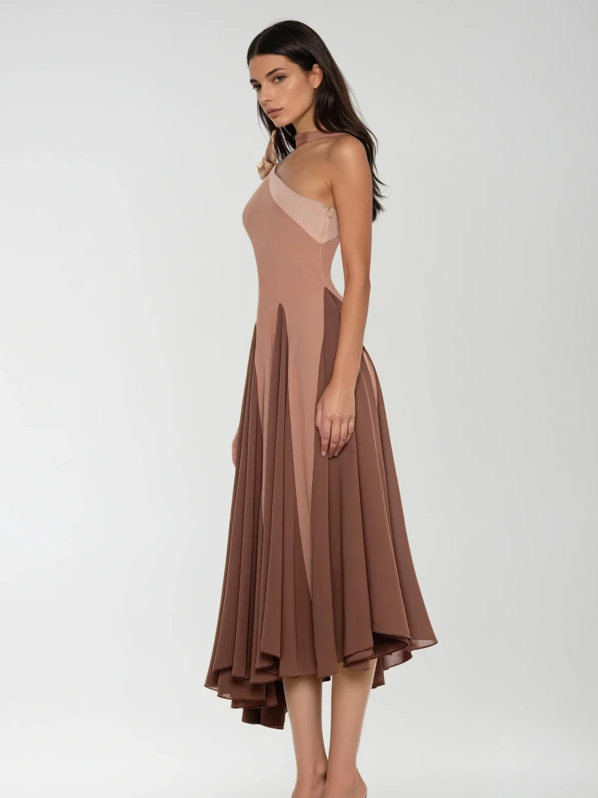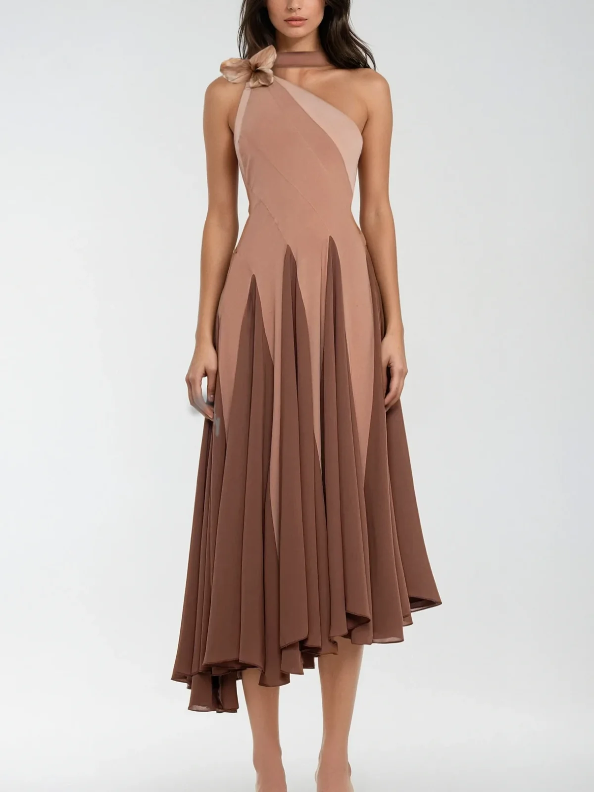 Elevate your wardrobe with the Floral One-Shoulder Scarf Midi Dress. This elegant dress features a graceful one-shoulder design and a delicate floral print, combining modern style with sophistication. The midi length creates a flattering silhouette suitable for both day and evening events. Crafted from 100% Polyester with a slight stretch, this dress offers comfort and style. Whether its a daytime gathering or a night out, this dress ensures you stand out with subtle elegance. Color variations may occur due to lighting. Available sizes: S, M, L. Model is wearing size S.