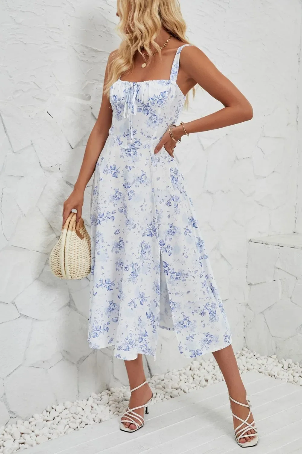 This Floral Print Cami Dress with Side Slit is a stylish choice for any summer event. Made of a comfortable blend of 95% cotton and 5% spandex, this dress features a flattering slit and basic style. Slightly stretchy for a perfect fit, this dress is not lined and is easy to care for with machine wash cold and tumble dry low instructions. Whether youre heading to a party or a casual outing, this dress will keep you looking chic and feeling comfortable. Available in various sizes.