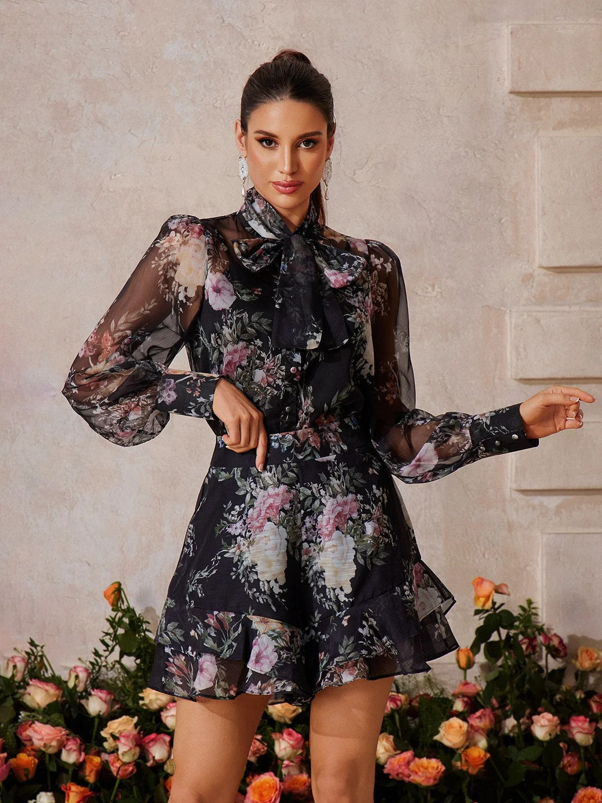 Elevate your wardrobe with this elegant Floral Print Long Sleeve Skirt Set, blending style with comfort effortlessly. The delicate floral pattern, long sleeves, and flattering silhouette make it perfect for any occasion. Crafted from lightweight 100% Polyester with a slight stretch, ensuring all-day comfort. This set is ideal for those who value timeless fashion with a modern twist. Features an invisible zipper at the back for easy wear. Available in sizes S, M, and L. Color variations may occur due to lighting.