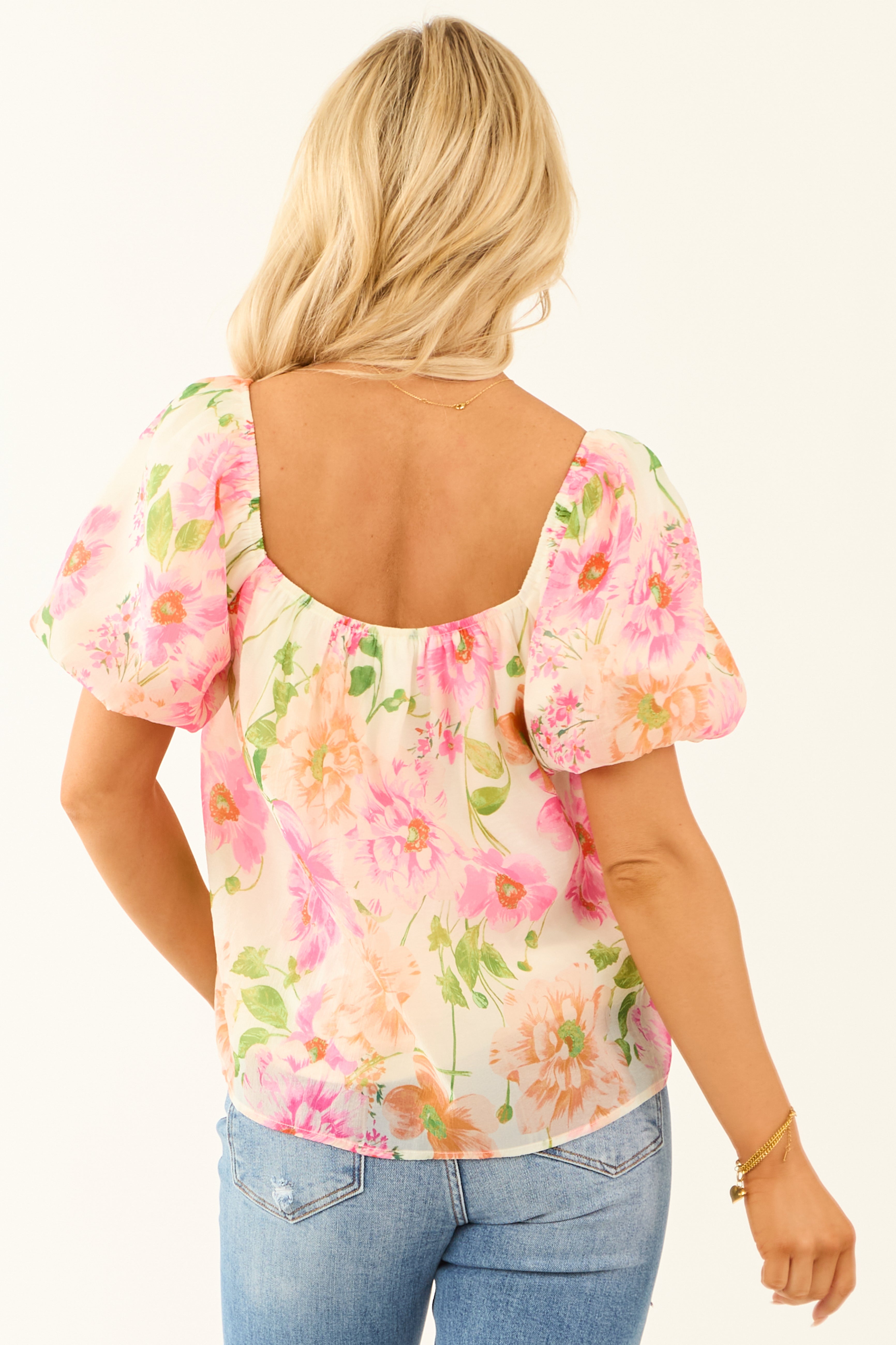 Stay stylish and comfortable in our Floral Print Square Neck Elastic Blouse! This non-stretchy woven top features a vibrant floral pattern in Sunset, Melon, Hot Pink, Blush, Lime, and Jade Green shades. The elastic neckline and cuffs provide a perfect fit. Hand wash cold, line dry, and iron on low heat for care. Variations may occur due to the nature of the fabric. Model is 57″ tall, wears size Small, with a bust of 34″ and a waist of 26″.