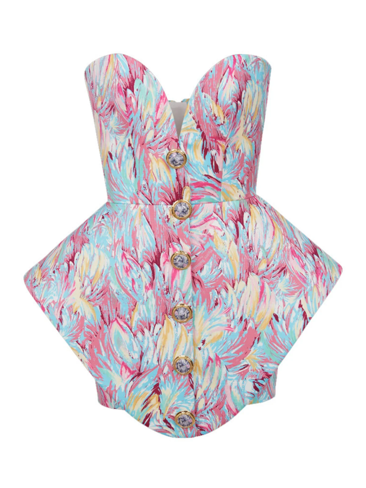 Elevate your summer wardrobe with our Floral Print Strapless Mini Dress by Lu Yili. Effortlessly turning heads, this delicate strapless design accentuates your shoulders and neckline. The vibrant floral pattern exudes a fresh, feminine charm perfect for any occasion. Crafted from 100% Polyester with a slight stretch, this dress offers both comfort and style. The mini length silhouette brings a playful elegance, ideal for summer outings and special events. Features an invisible zipper at the back. Care: Dry clean only. Please note: Color variance may occur due to lighting effects. Model is wearing size S.